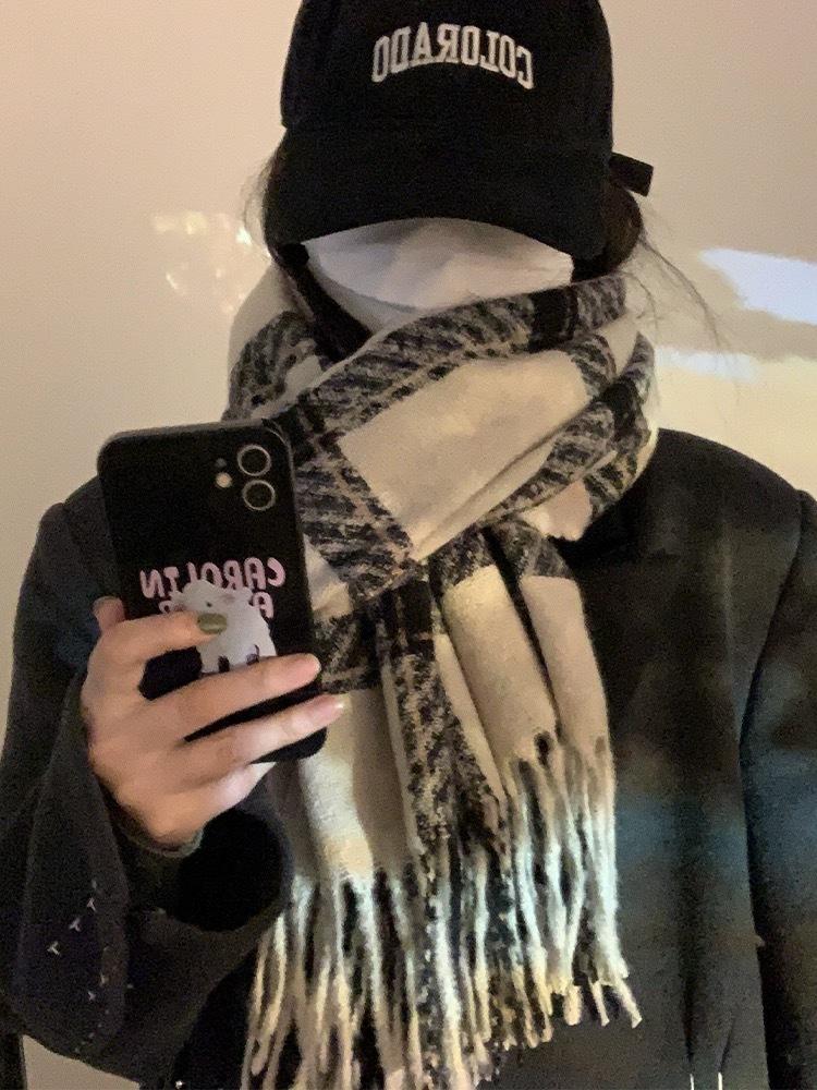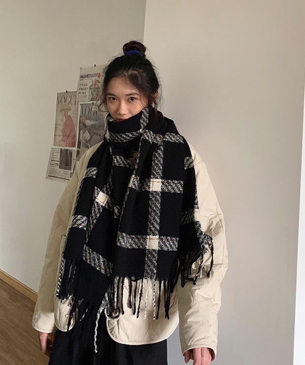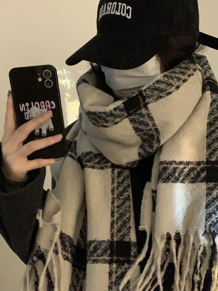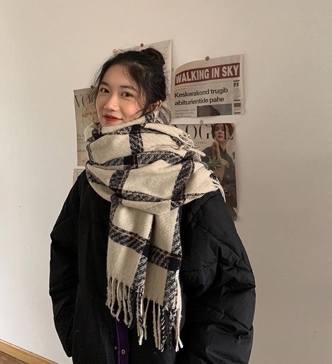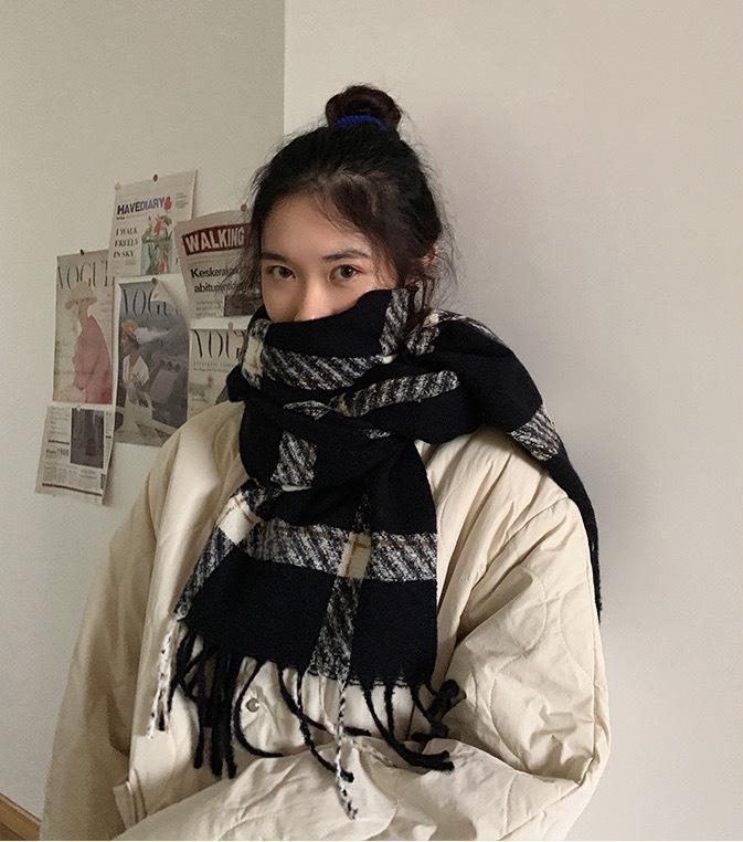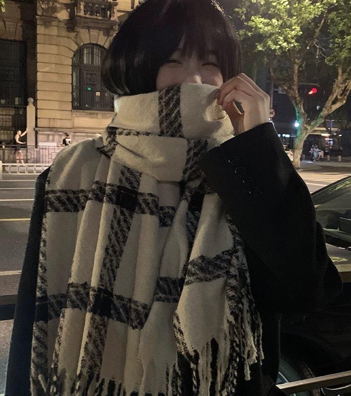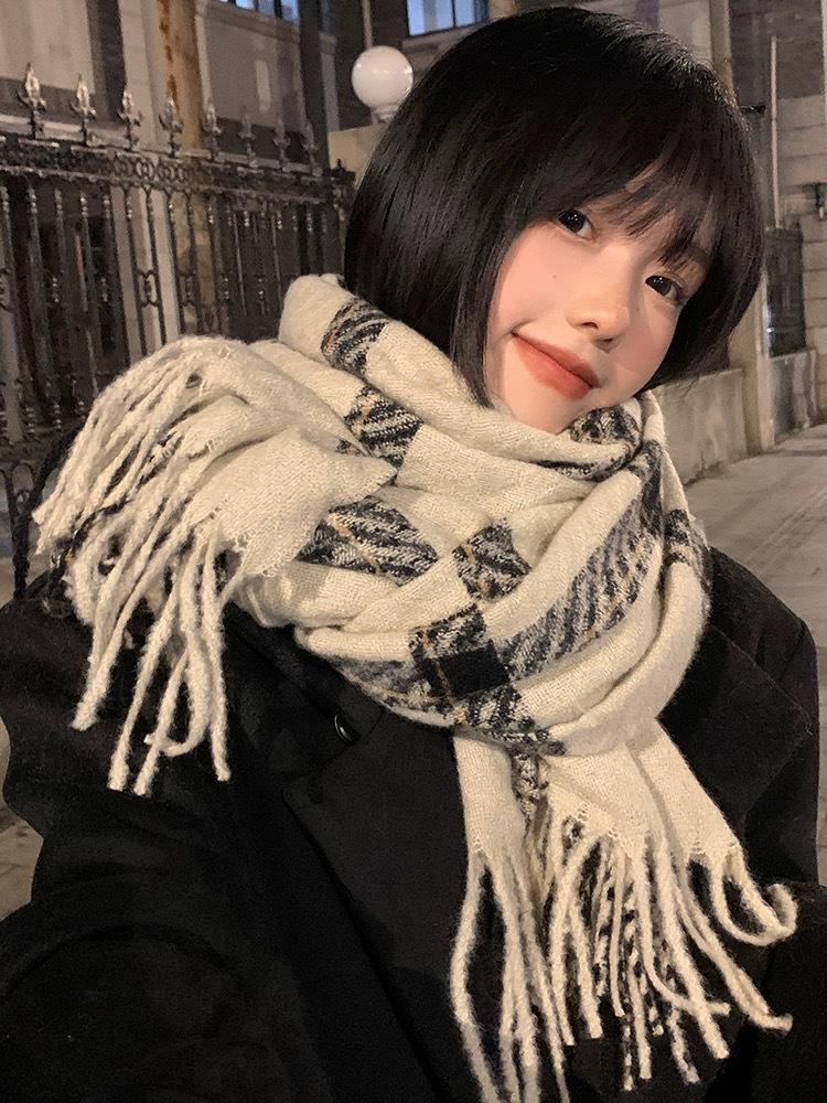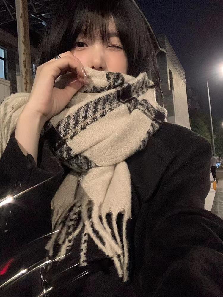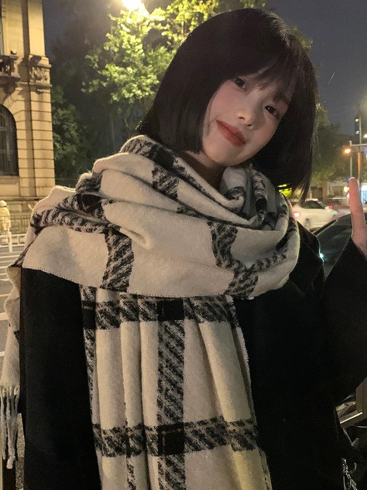 Bufanda a cuadros nueva de 2023 para mujer, estilo coreano de invierno, retro, de alta calidad, versátil, gruesa, suave y cálida.
