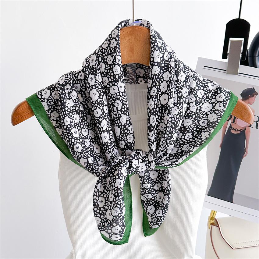 Bufanda de seda floral estilo coreano, fina, cuadrada, pequeña, con estampado de espiga y terciopelo sintético para mujer.