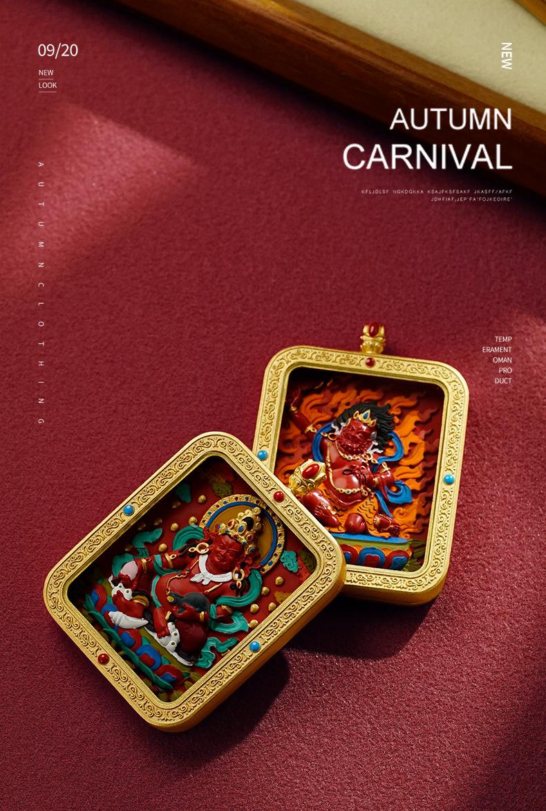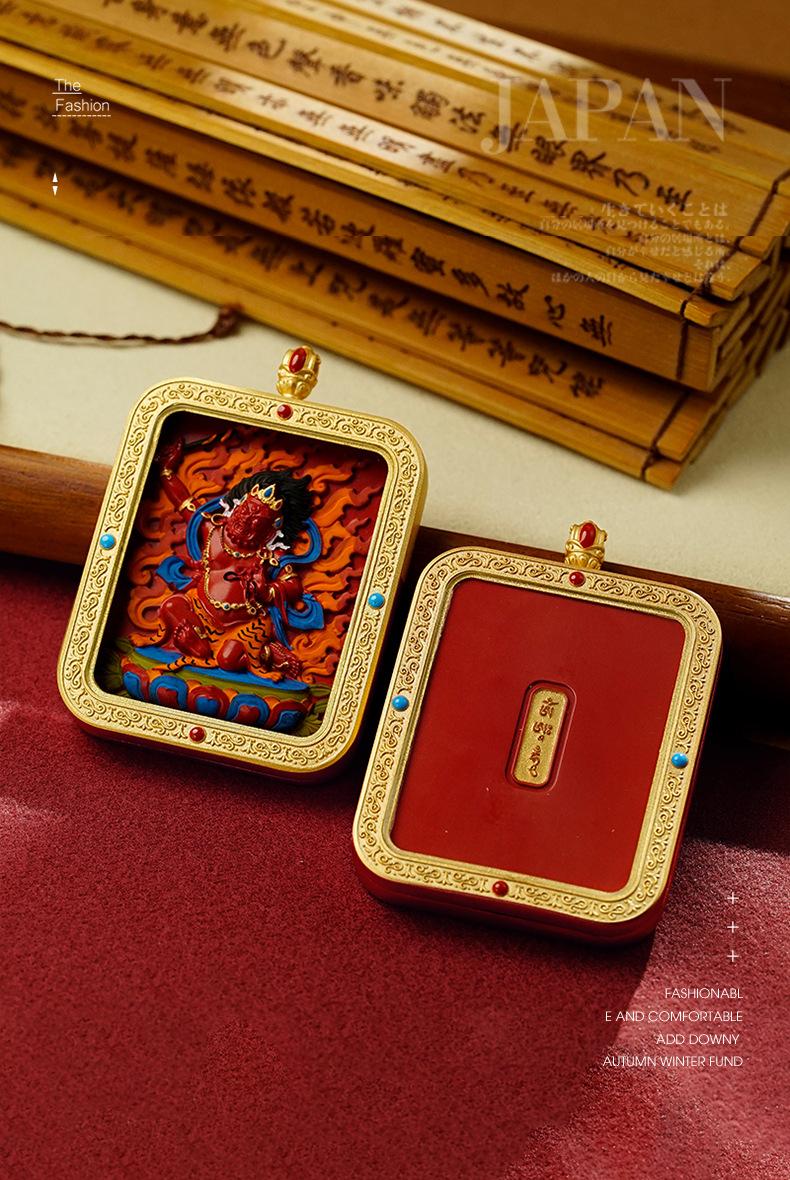 Colgante Thangka de Cinabrio Pintado a Mano Estilo Xizang Dios Amarillo de la Riqueza Tara Verde Zaki Ram DIY Personalizable Thangka para Frotar