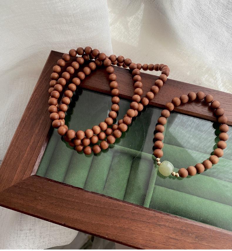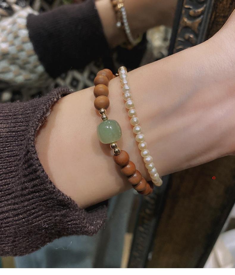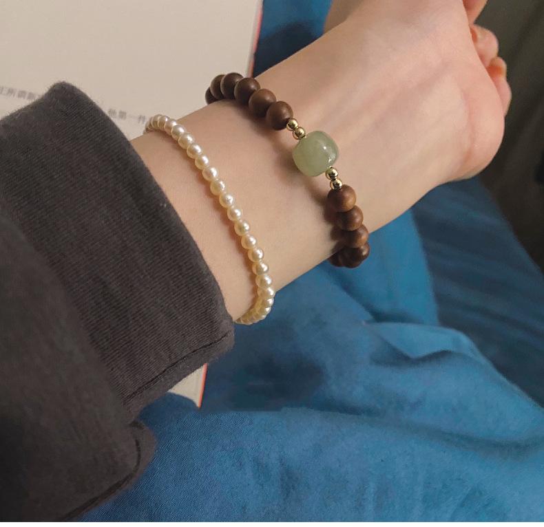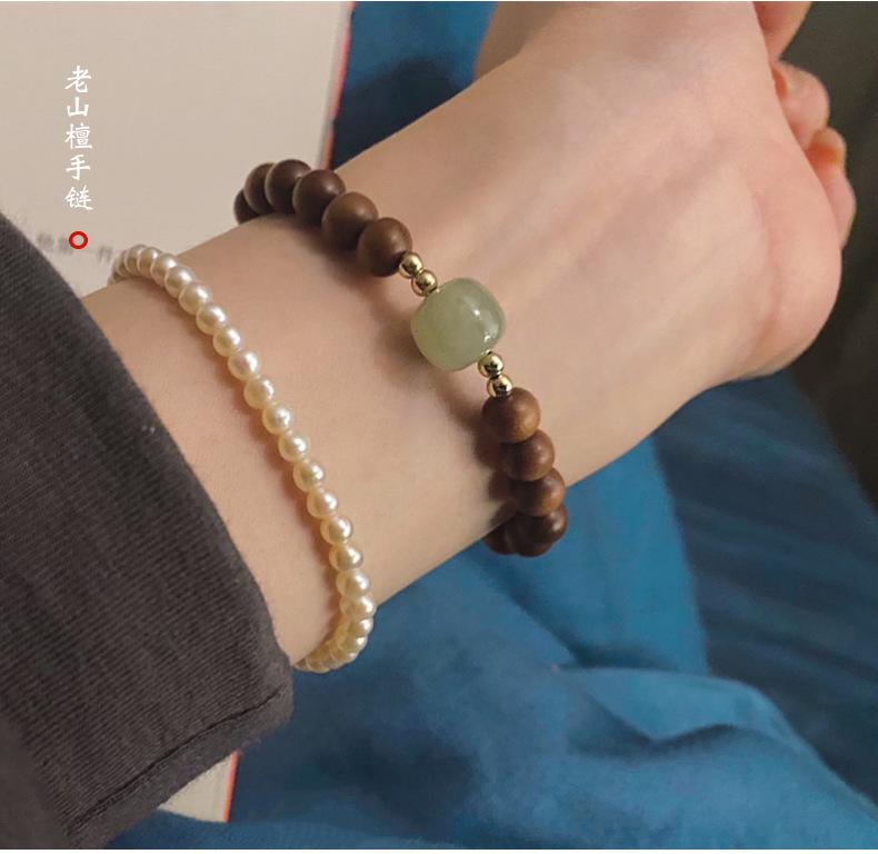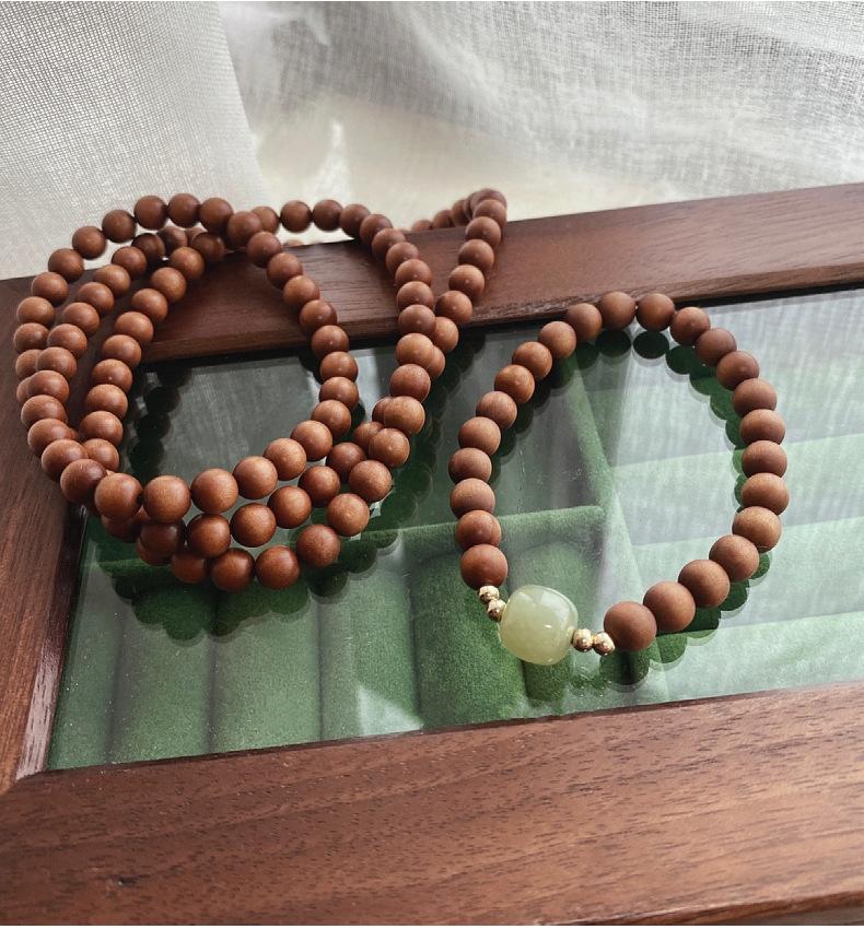 Pulsera de sándalo Laoshan de una vuelta con cuentas redondas de 6 mm DIY para mujer, jade Hetian, cuentas antiguas, cuentas sueltas, joyería artística retro