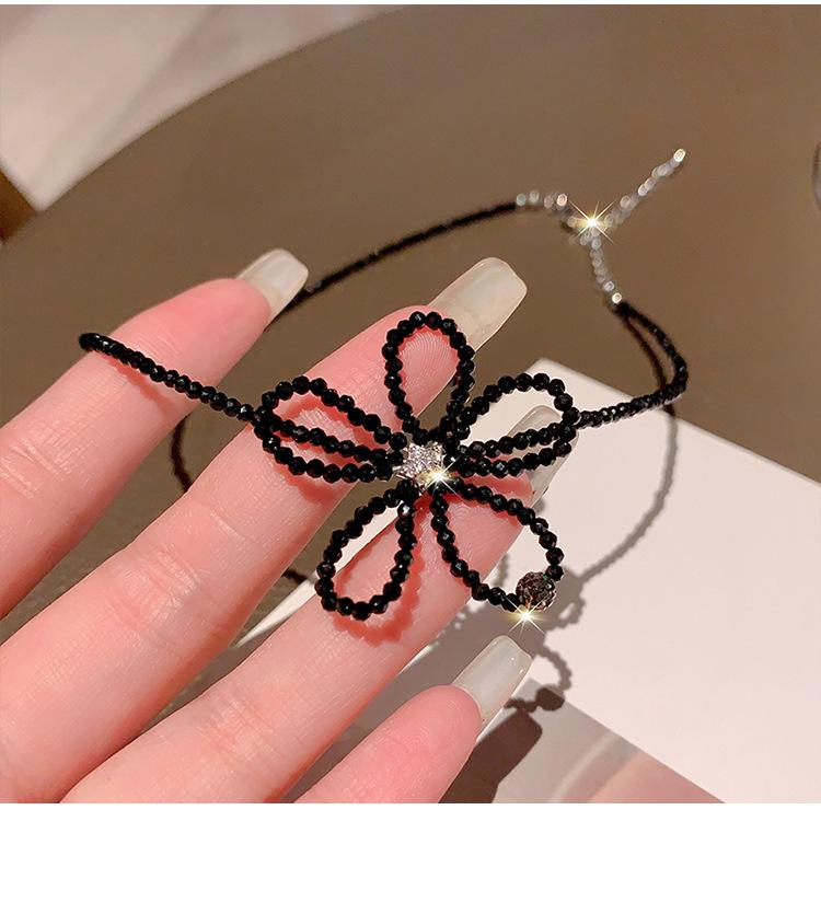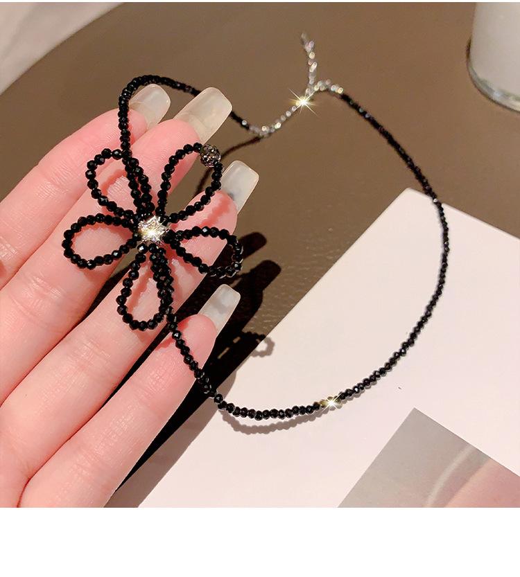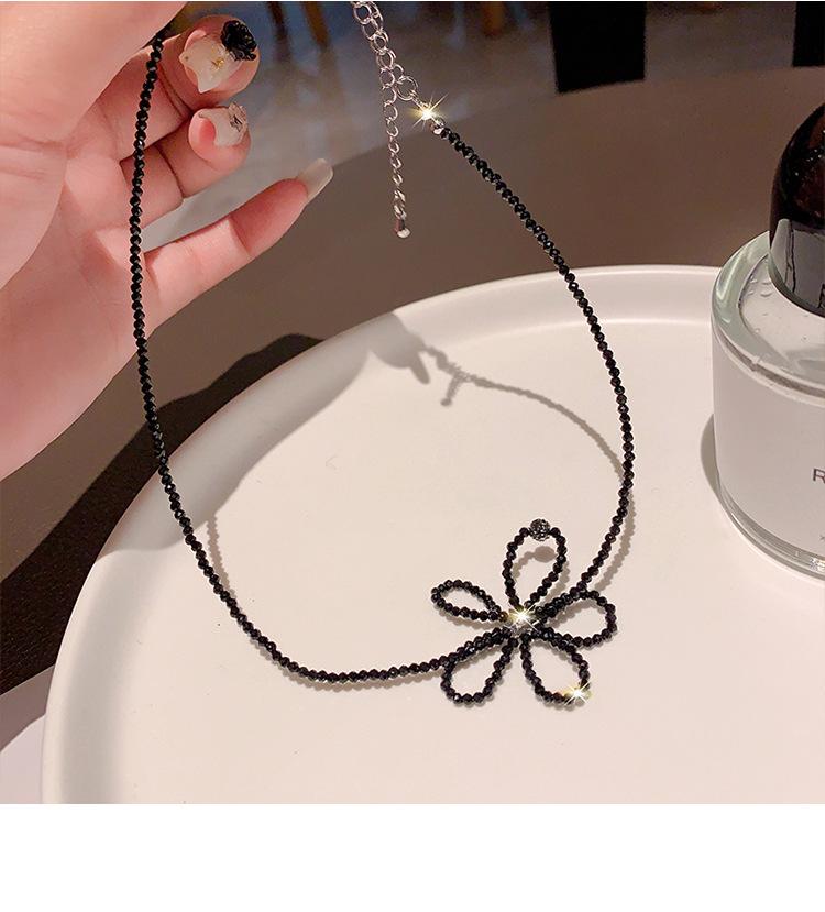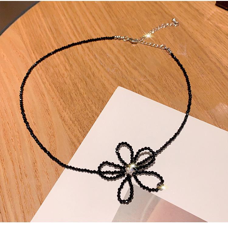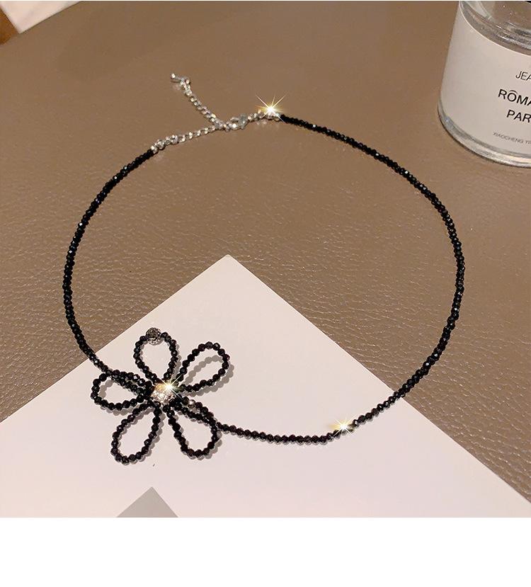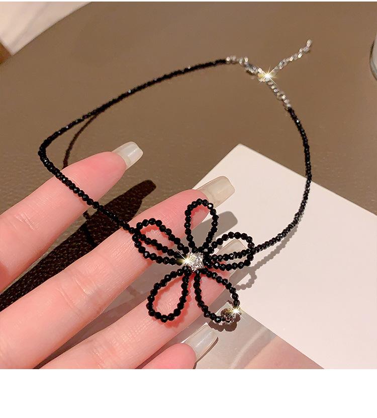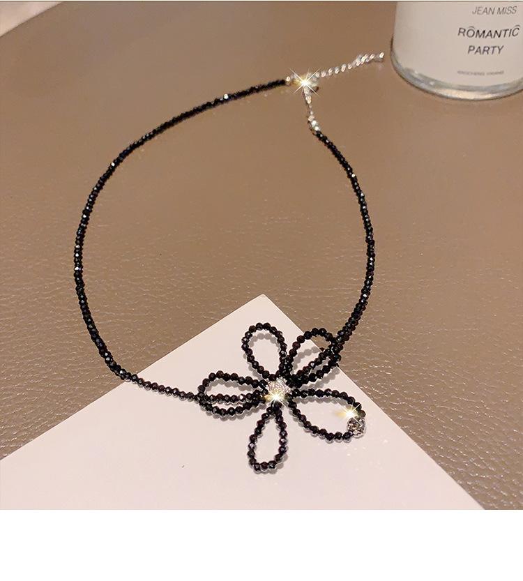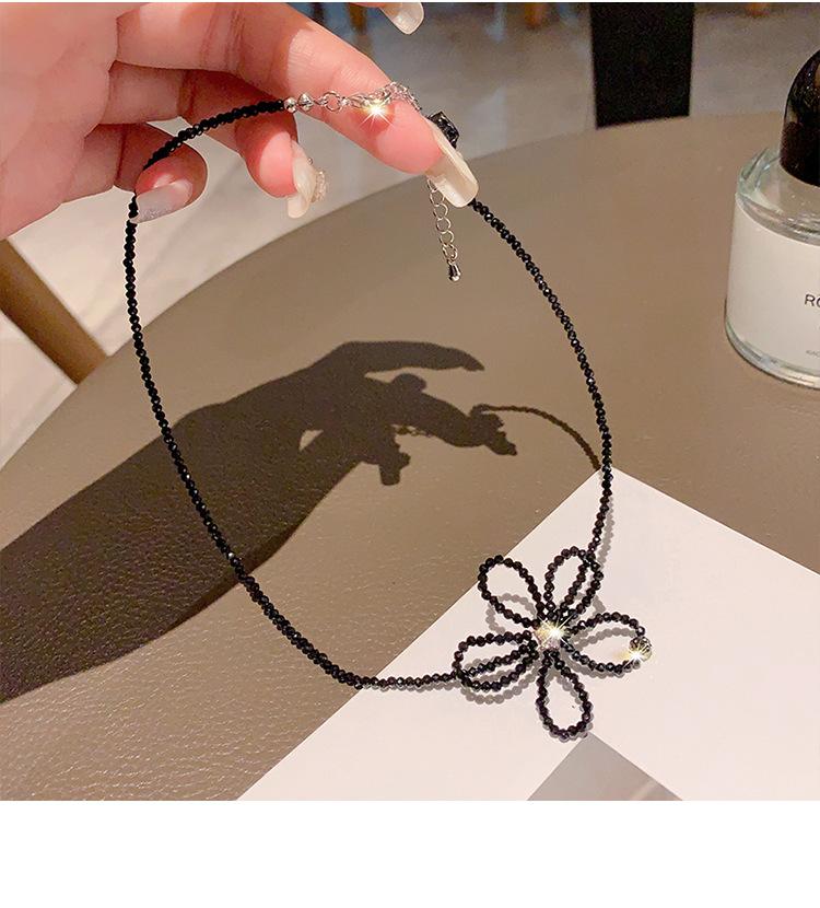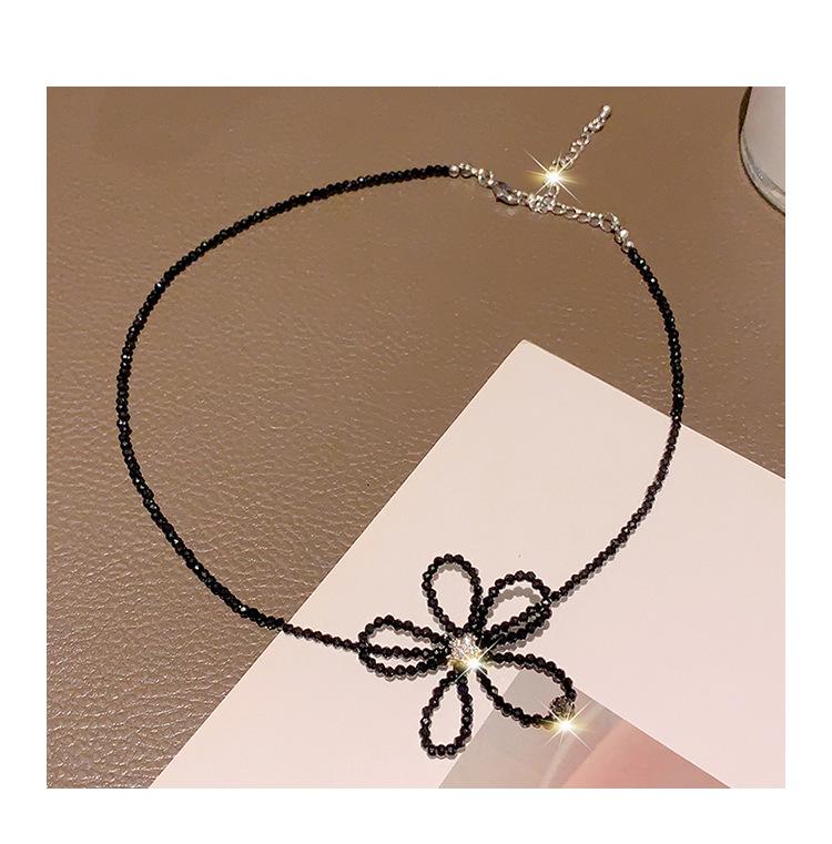 Collar Delgado Cadena Clavícula para Mujer, Gargantilla Francesa de Lujo Ligero, Cadena de Cuello de Cristal Negro, Colgante Versátil Nuevo 2023