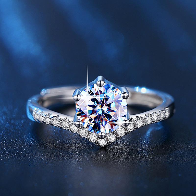 Anillo de Moissanita para Mujer de 1 quilate Corona Anillo de Boda Anillo de Diamante Joyería Elegante