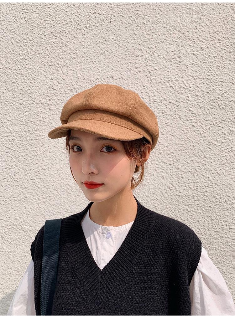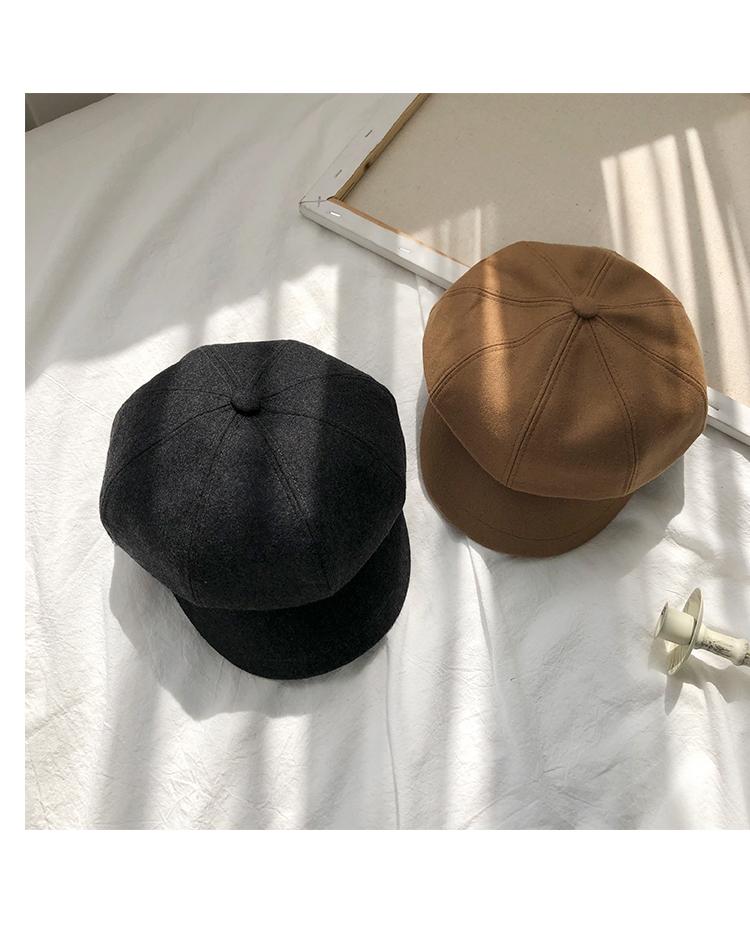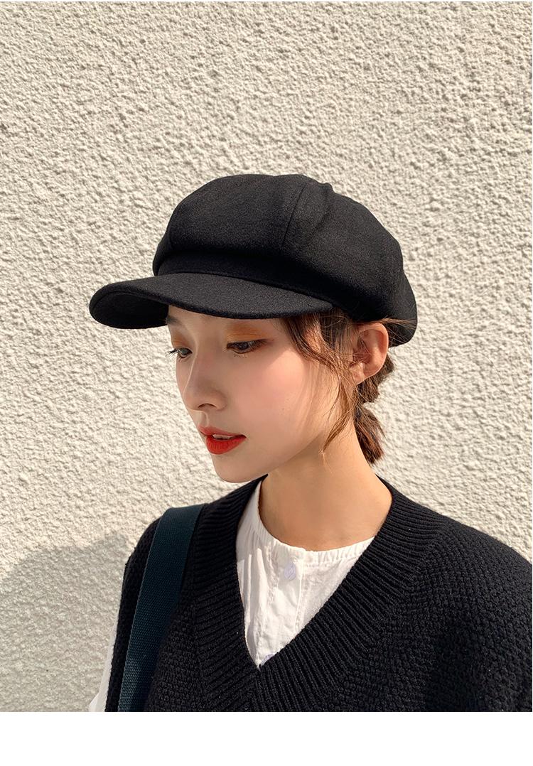 Boina negra fina para mujer, estilo británico, retro, otoño e invierno, estilo japonés, coreano, pintor de celebridades en línea, vendedor de periódicos, sombrero octogonal.
