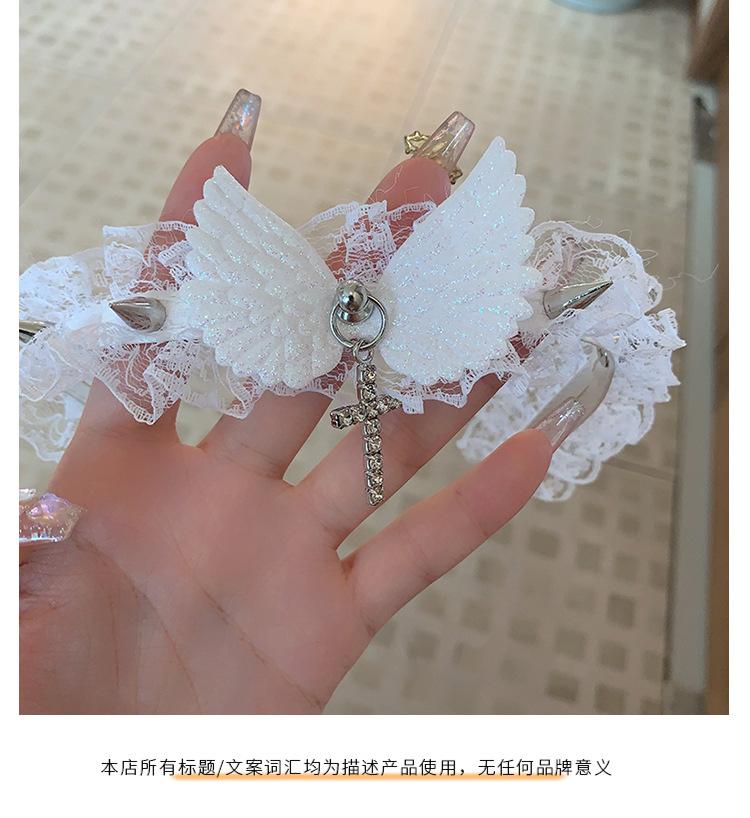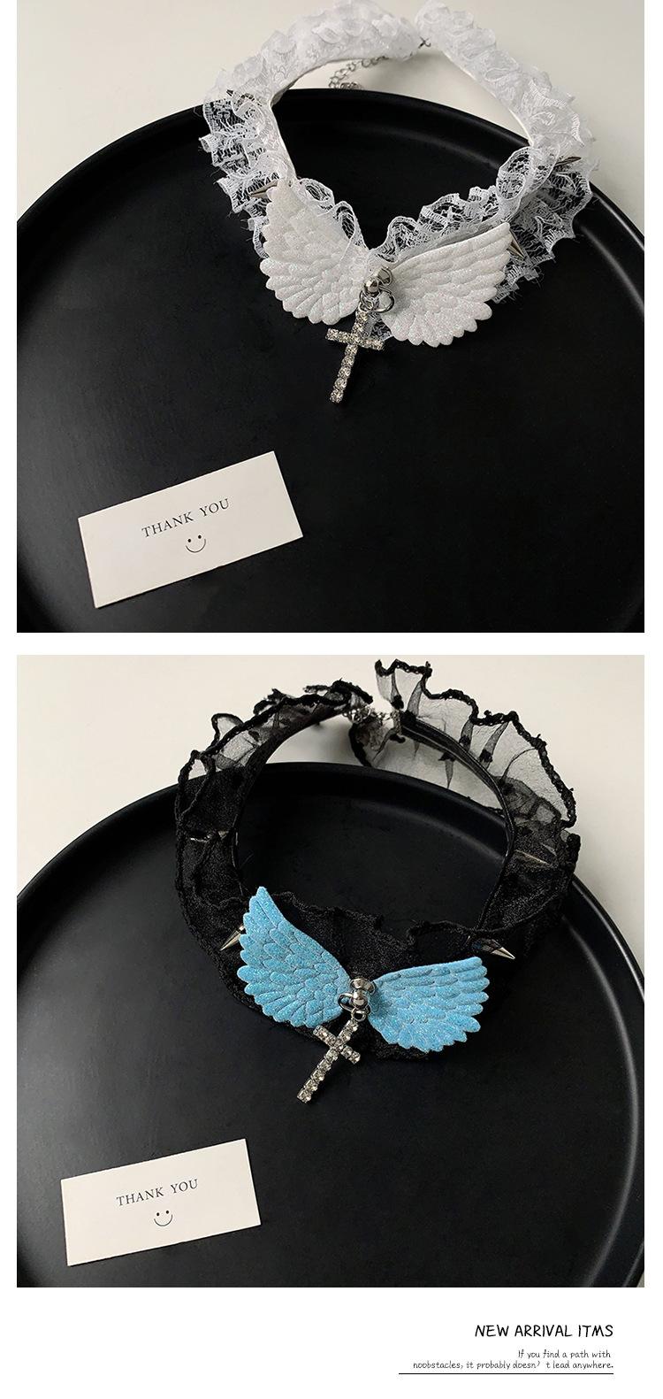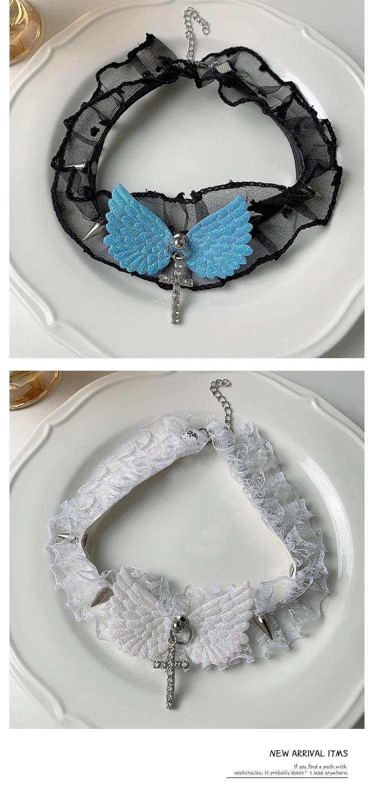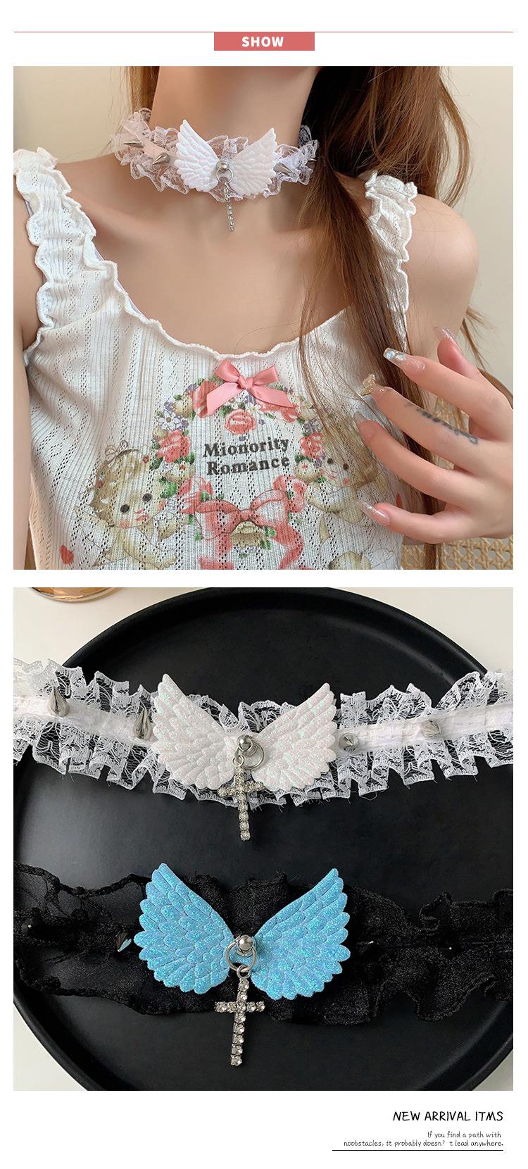 Collar de encaje, gargantilla cruzada femenina, collar de alas con personalidad, cadena de clavícula, correa para el cuello, collar con diseño de nicho, anillo para el cuello