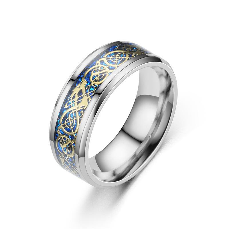 Anillo de moda europea y americana para hombre al por mayor acero de titanio acero inoxidable anillo con patrón de dragón pareja accesorios calientes transfronterizos