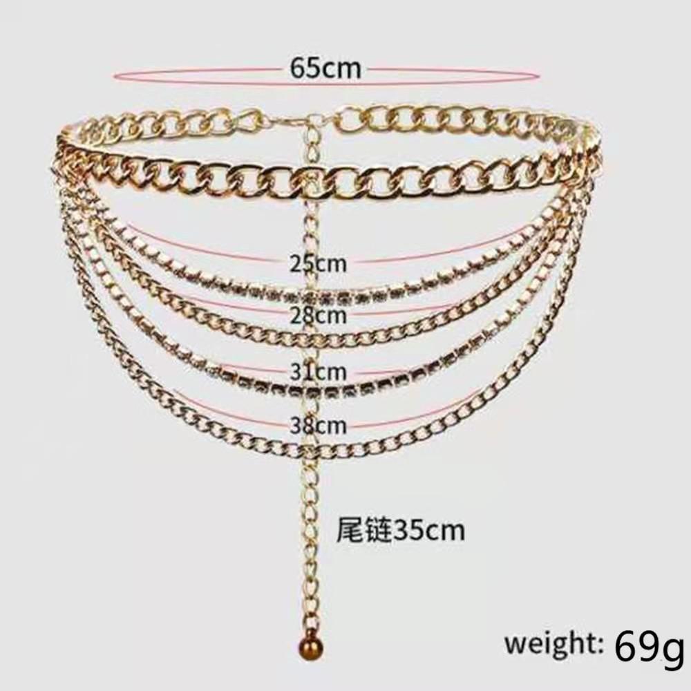 Cadena geométrica de moda transfronteriza europea y americana, cadena corporal con garra de diamantes de imitación de metal, cadena de cintura con borlas multicapa para mujer