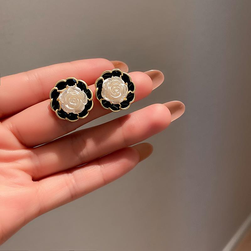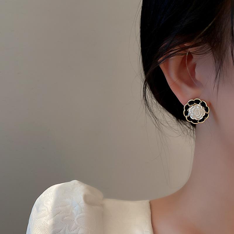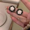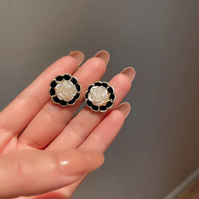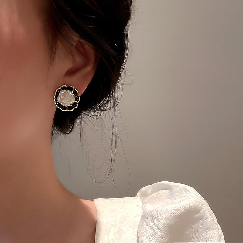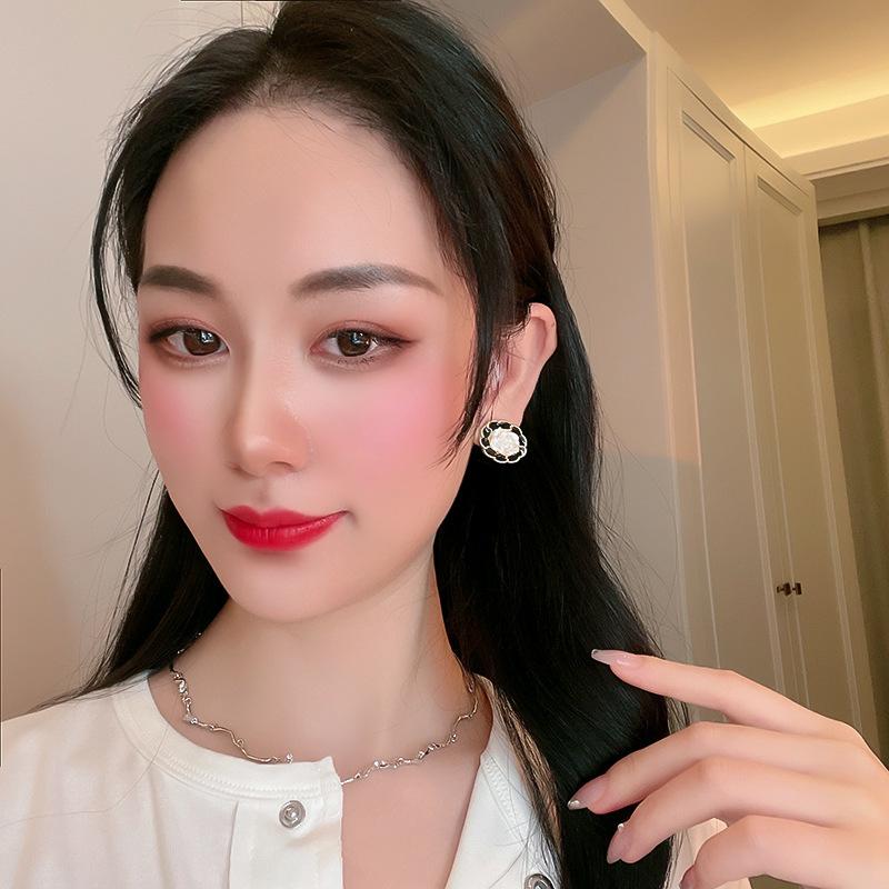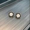 Pendientes Dongju con forma de flor estilo Hepburn retro francés con aguja de plata, pendientes redondos de mujer con contraste de color, estilo Chanel, nuevos pendientes de moda con clip para la oreja