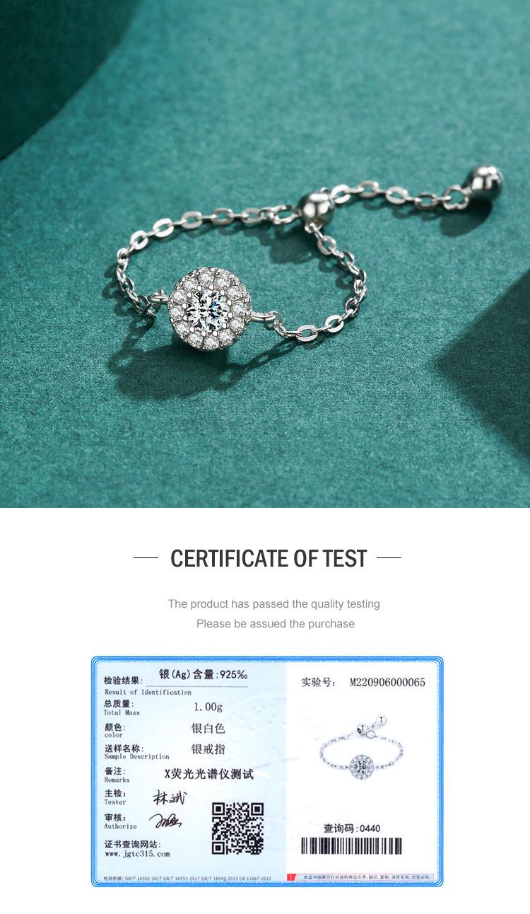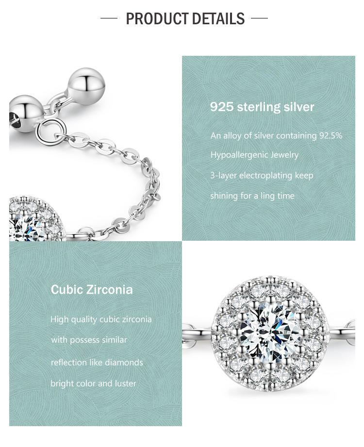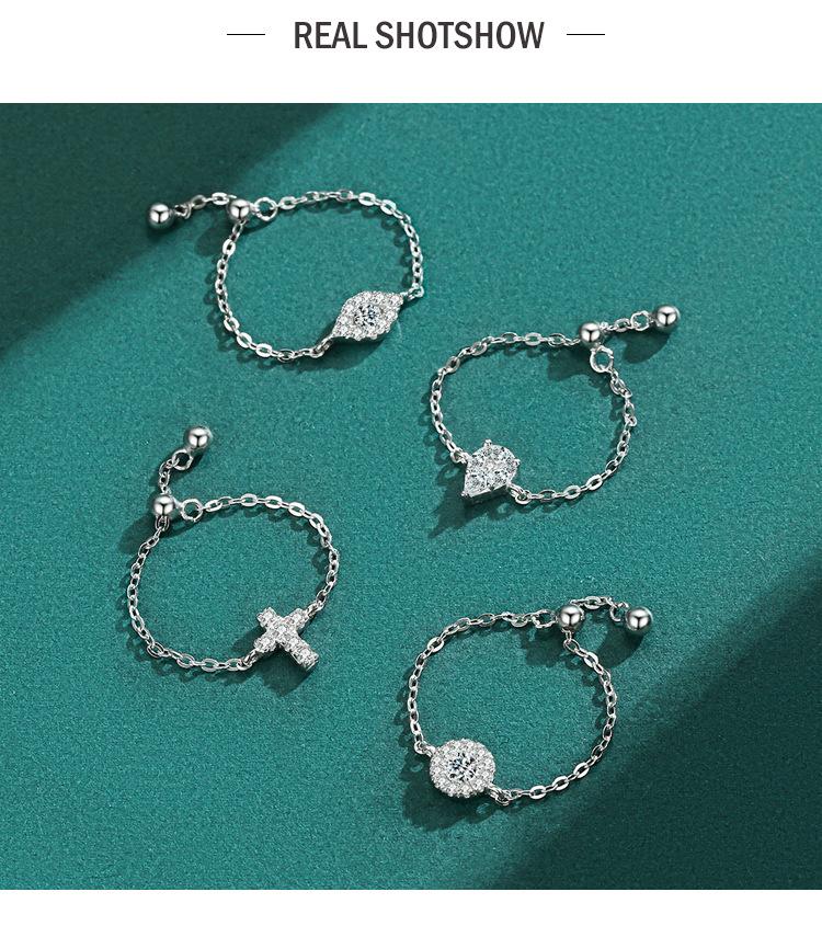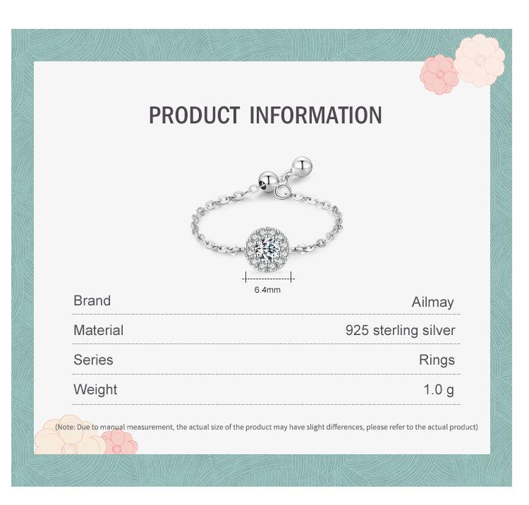 Anillo redondo de diamantes de plata s925 para mujer, estilo nicho, cadena ajustable, estilo frío, anillo fino europeo y americano, joyería transfronteriza.