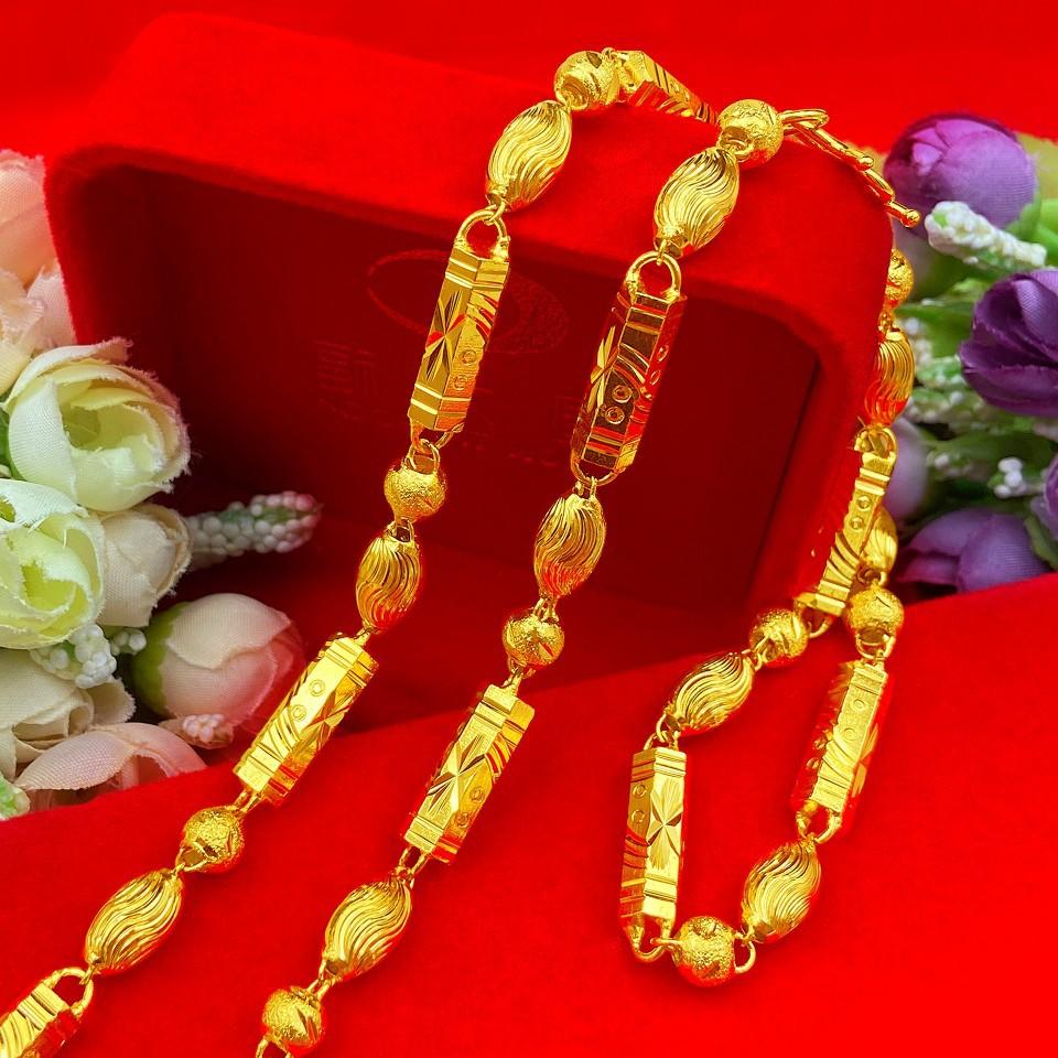 El collar de cuentas hexagonales largas dominantes de oro de arena de Vietnam, fabricantes de joyas de oro de imitación al por mayor, puede ser una generación de joyas para el cabello