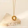 Collar Europeo y Americano Estilo Ins Nuevo Collar de Acero Inoxidable Oro de 18K con Incrustaciones de Zirconio Collar con Colgante de Anillo Calado Joyería para Mujeres