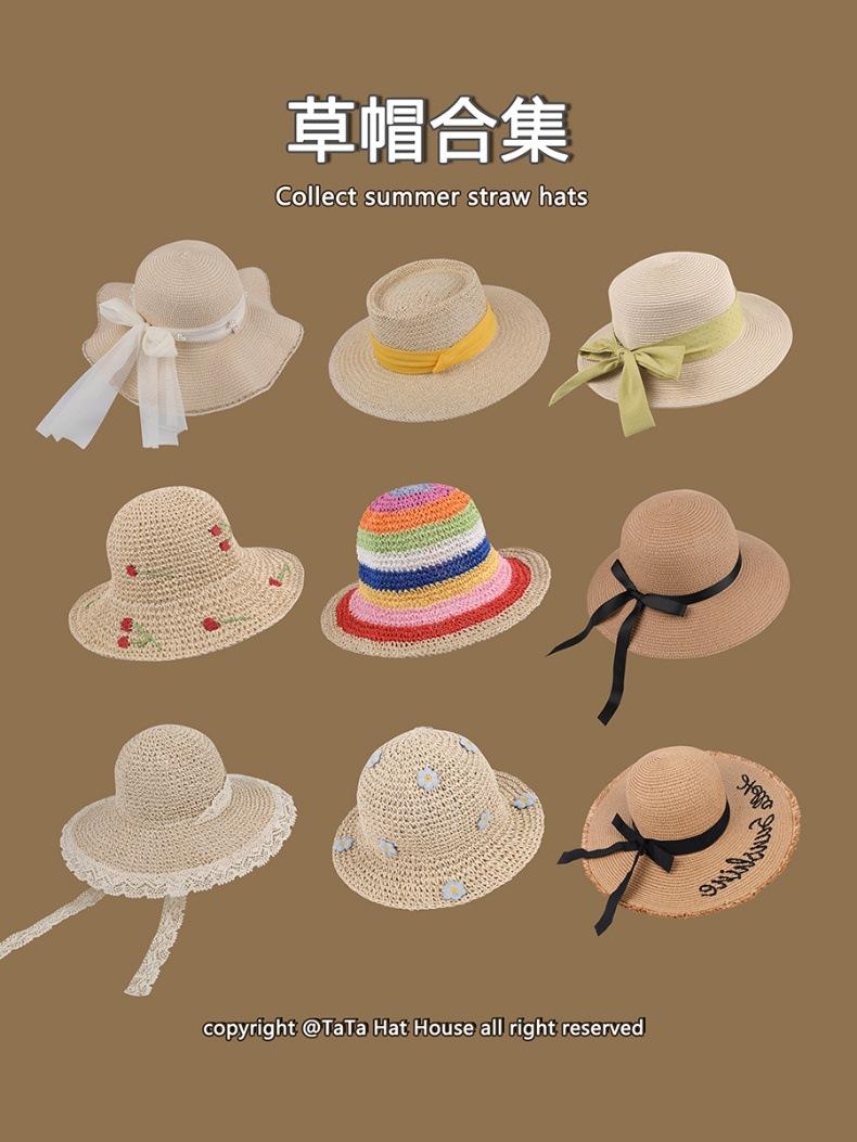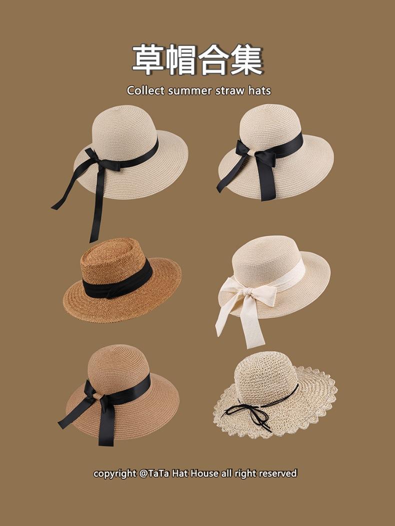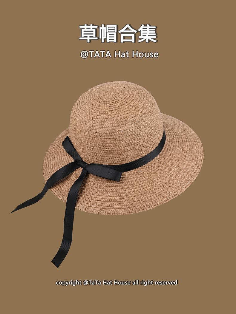 Compra Sombrero de paja de ala ancha para el sol, nuevo para mujer primavera y verano 2024, sombrero de paja con lazo para la playa, vacaciones, protección solar al por mayor en Joom.pro