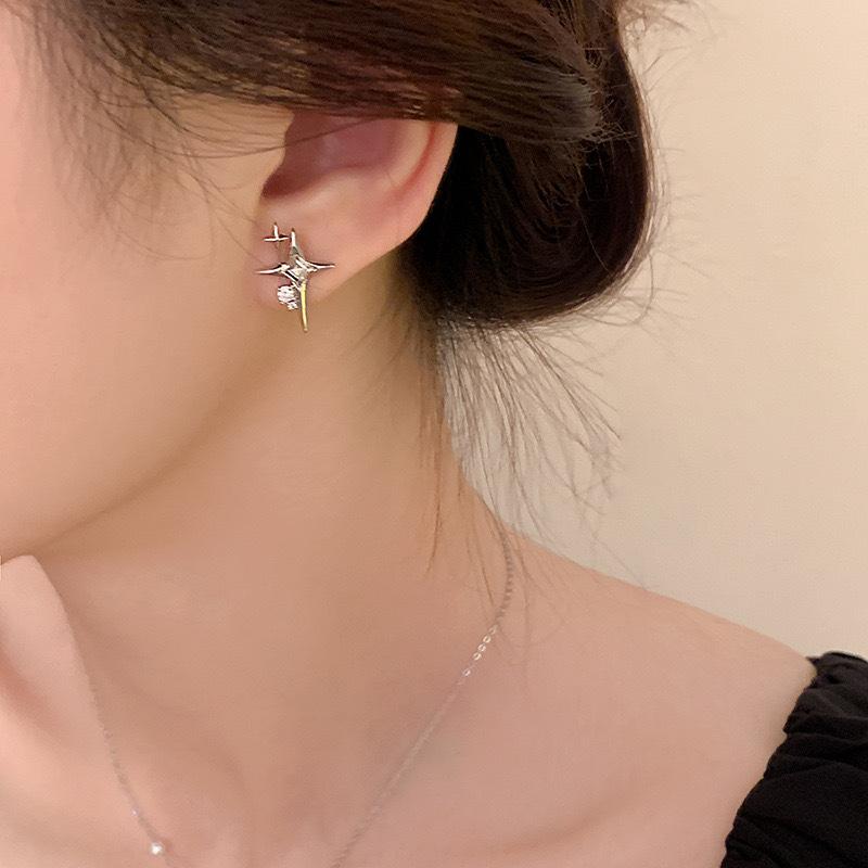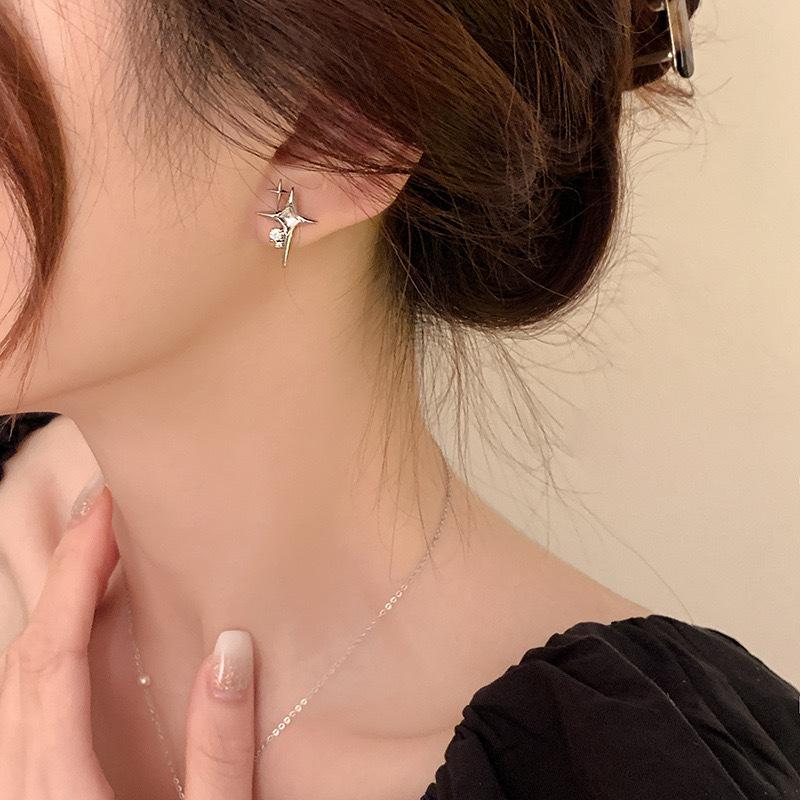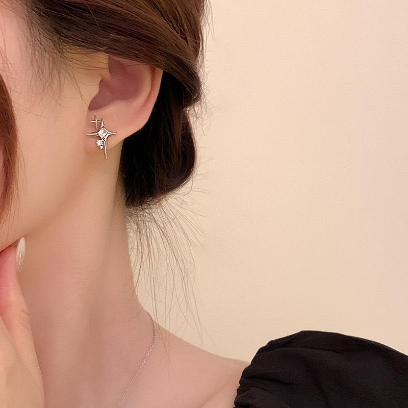 Pendientes de lujo ligeros, elegantes, sencillos y brillantes con diamantes de imitación, con forma de estrella, a la moda, exquisitos pendientes de nicho, joyería de moda.
