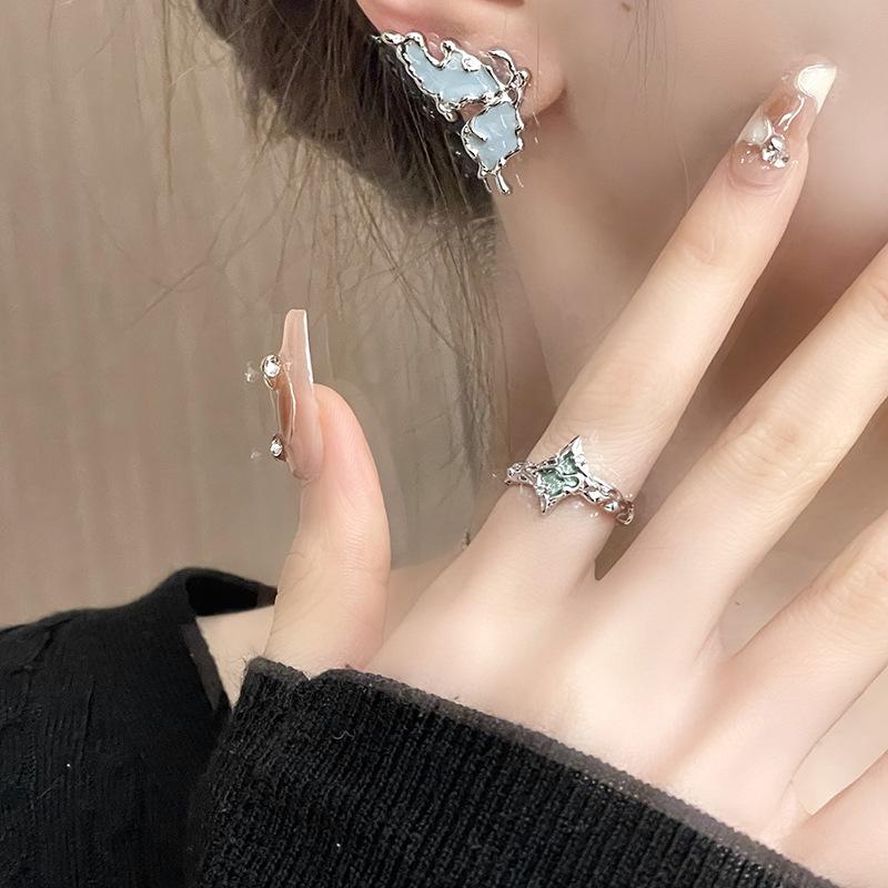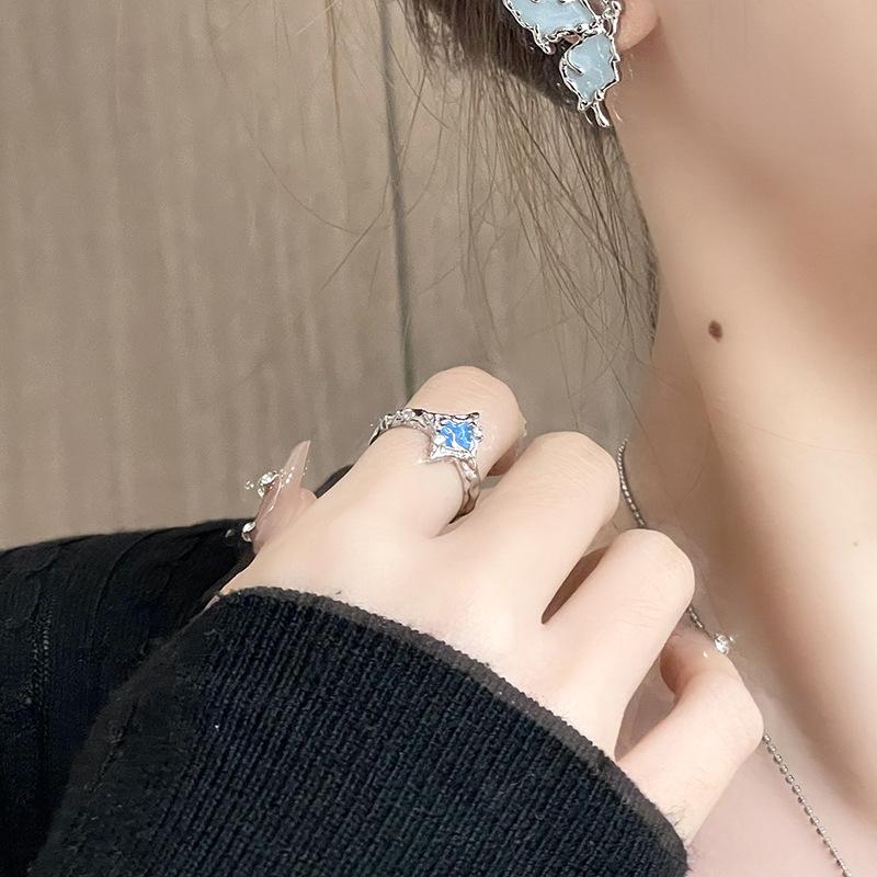 Anillo de apertura irregular con diseño de nicho, estilo francés, estilo frío, con textura distintiva para mujer.
