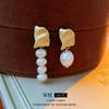 Nuevos pendientes de lujo ligeros y ahuecados de alta calidad con diseño de nicho de perlas, pendientes geométricos simples y huecos para mujer