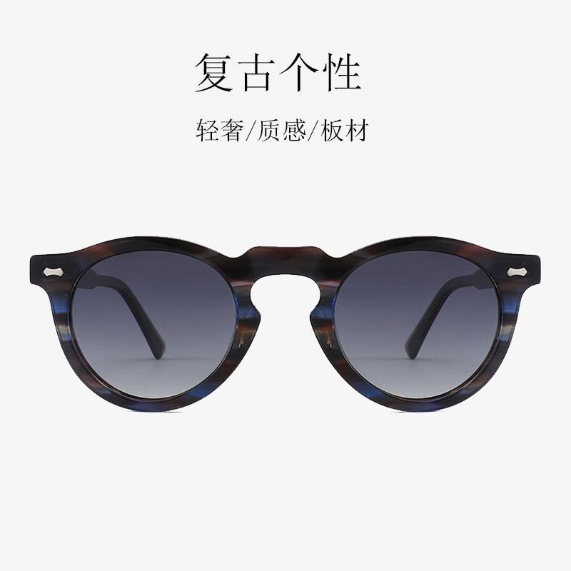 Tendencia de comercio exterior transfronterizo remache marco redondo gafas de sol moda personalidad estrellas europeas y americanas mismo estilo gafas de sol de placa hechas a mano