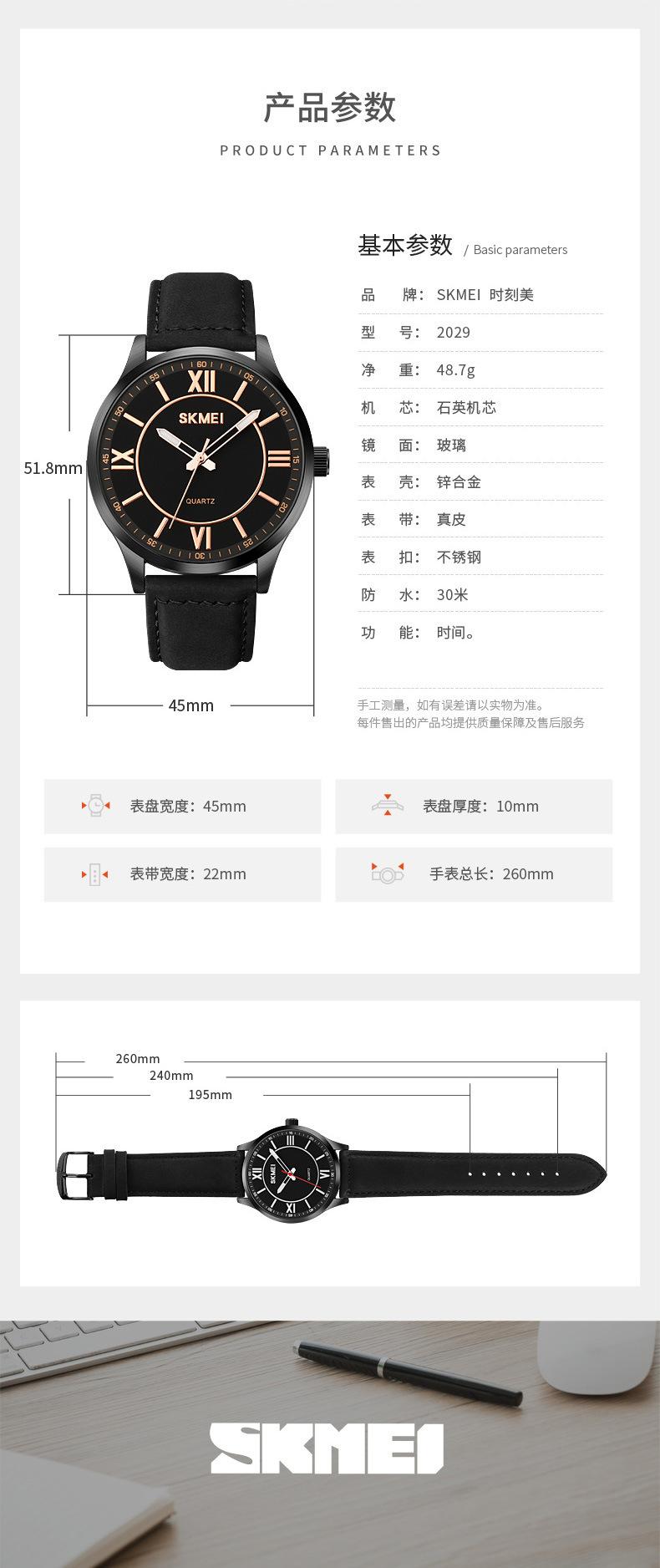 Reloj Skmei para hombre, reloj de cuarzo resistente al agua, reloj de moda con correa de negocios para hombre, reloj de comercio exterior, venta al por mayor