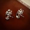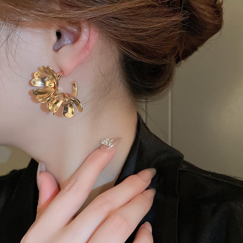 Aretes Retro Old Heavy Metal Flor Aguja de Plata Aretes de Nicho de Moda Elegantes Simples Franceses de Alta Gama para Mujer