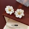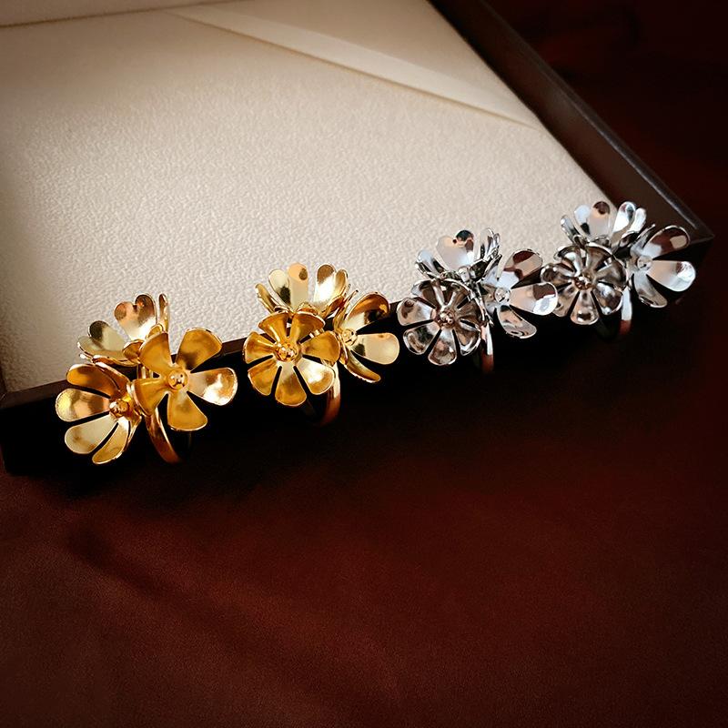 Silver Needle-Golden Flower Stud Earrings, Silver Needle-Silver Flower Stud Earrings