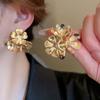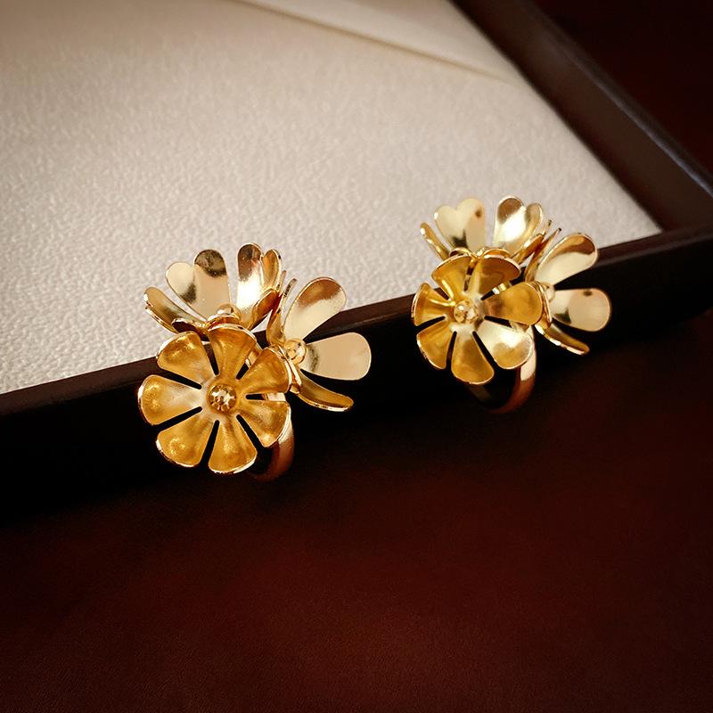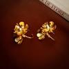 Silver Needle-Golden Flower Stud Earrings