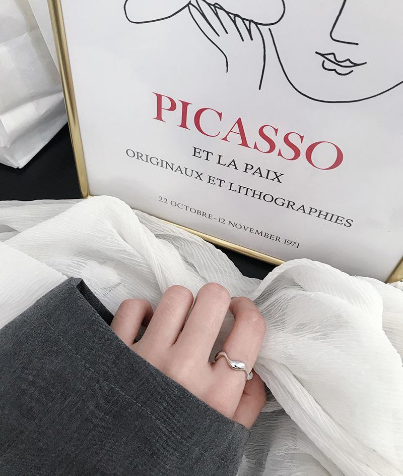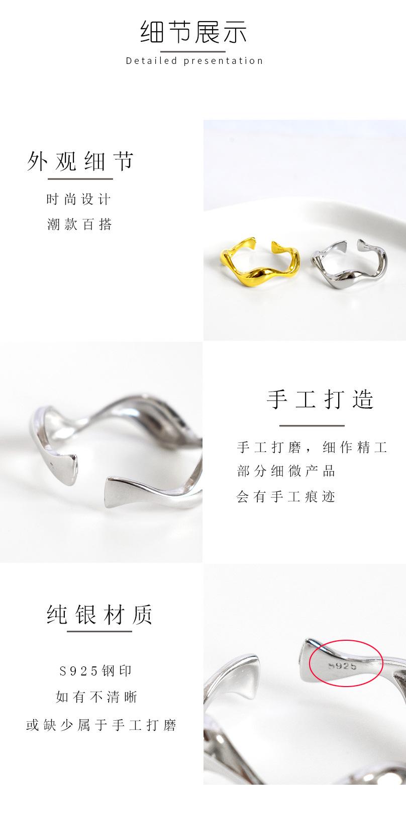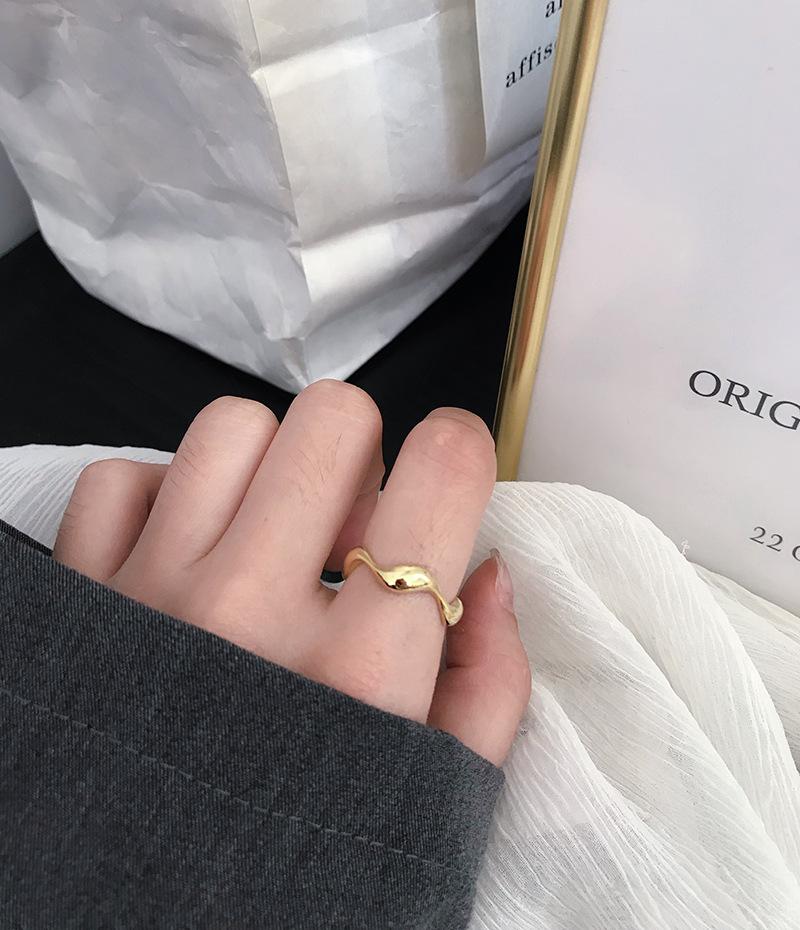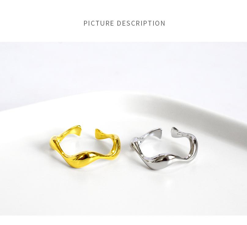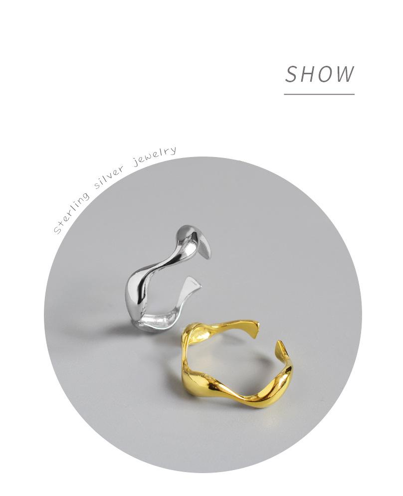 Anillo de plata esterlina S925 liso minimalista anillo de cola anillo de onda irregular personalidad chic para mujer joyería coreana