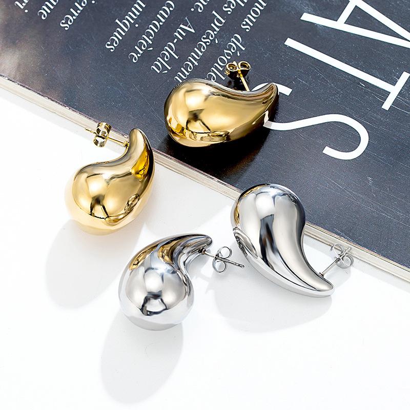 Compra Pendientes de gota de agua de acero inoxidable populares de Europa y América, elegantes, combinables, sencillos, de moda, chapados en oro de 18 quilates, al por mayor al por mayor en Joom.pro