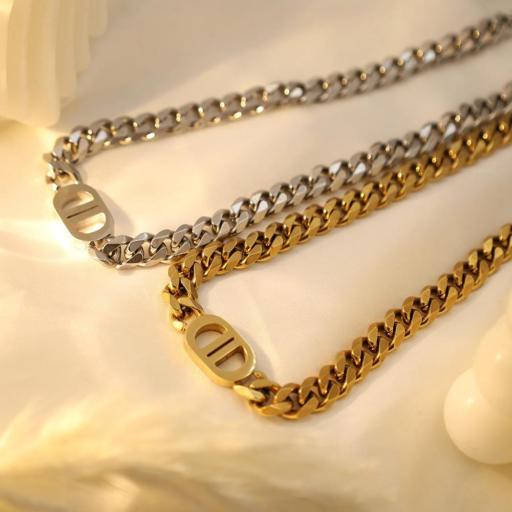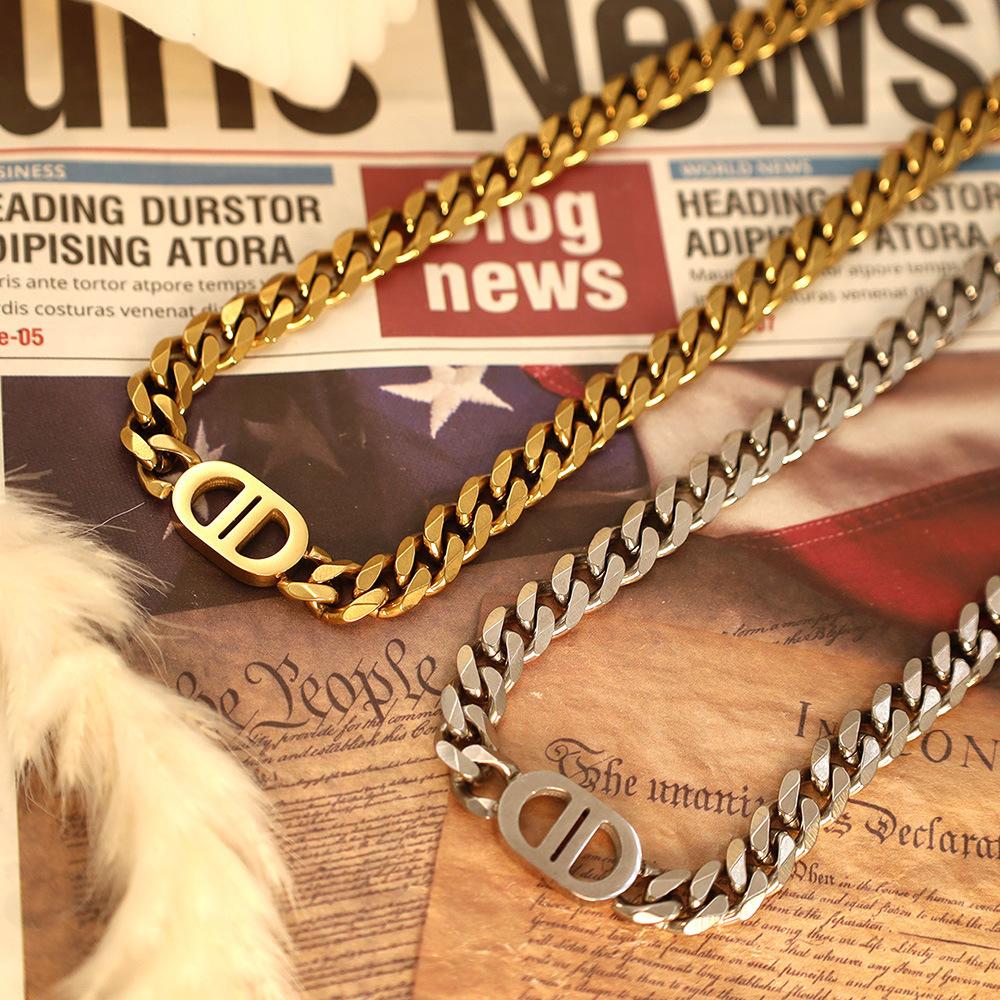 Collar de Cadena Cubana Hiphop Retro Europeo y Americano Acero de Titanio Joyería para Mujer Versátil de Alta Gama