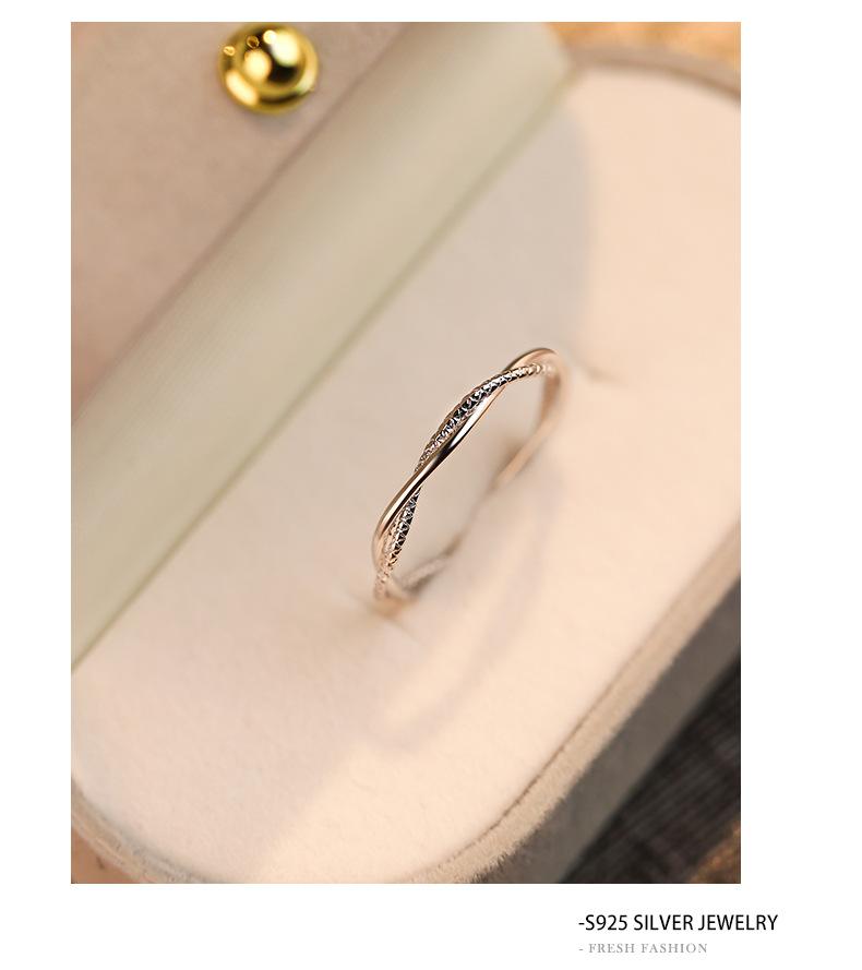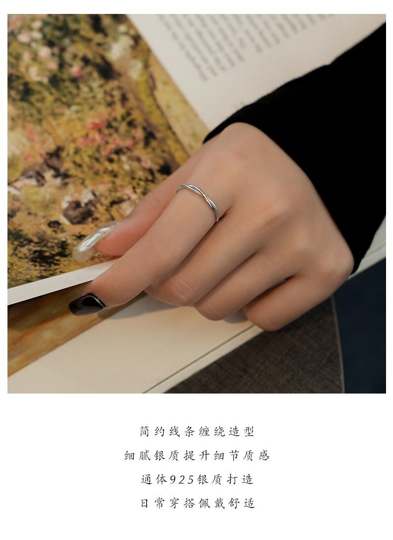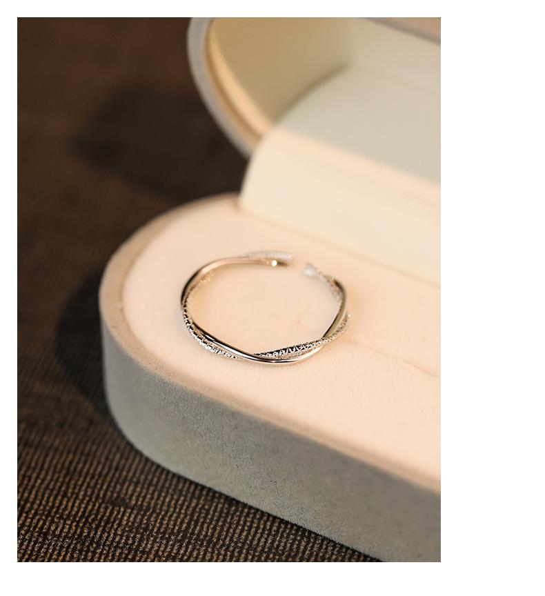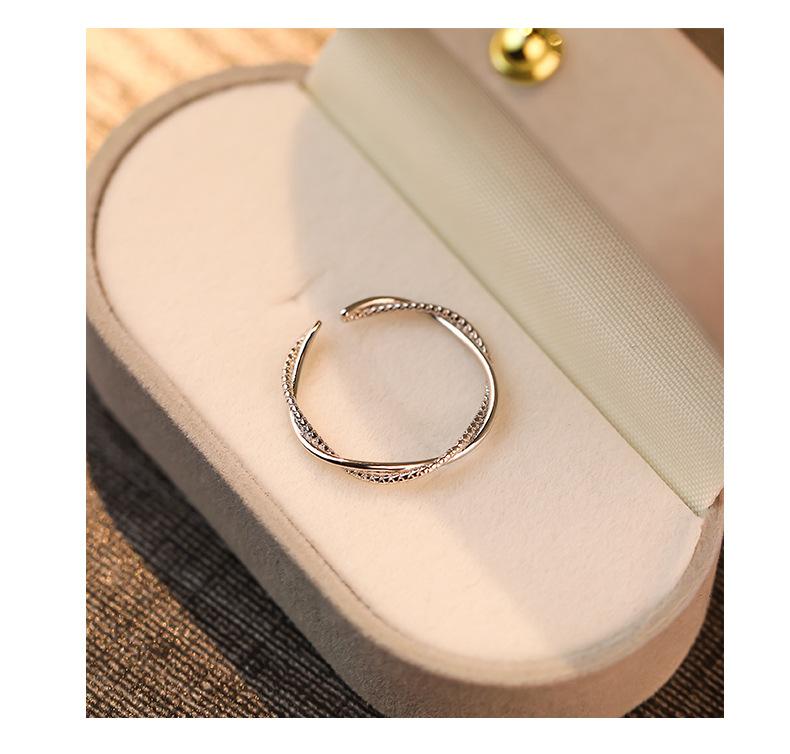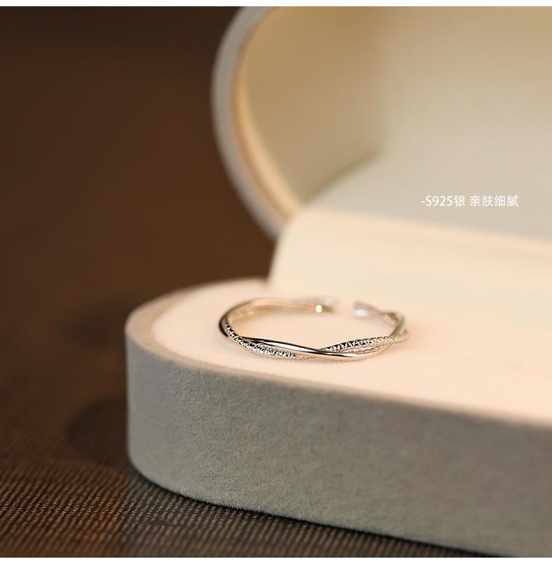 Anillo de plata de ley s925 con doble línea de cuerda para mujer, diseño geométrico minimalista de nicho, anillo abierto con giro y curvatura.
