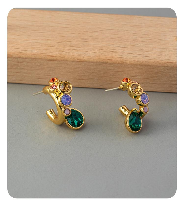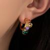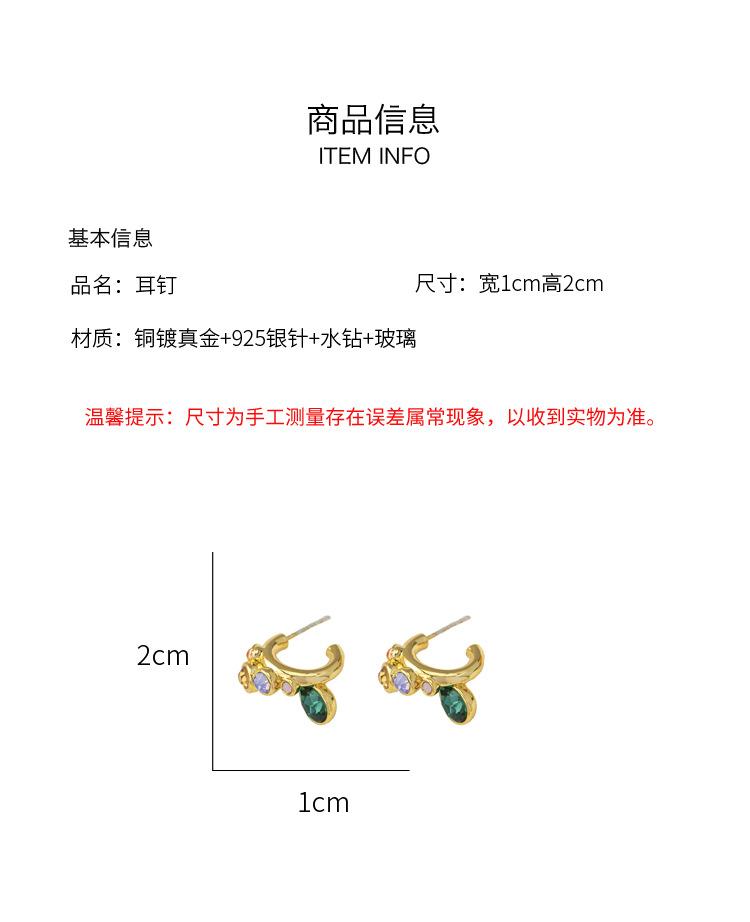 Aretes Franceses Retro de Diseño Nicho de Lujo Ligero Aretes Verdes Atmosféricos de Sentido de Alta Gama Aretes Pequeños Populares de Moda Estilo Chanel