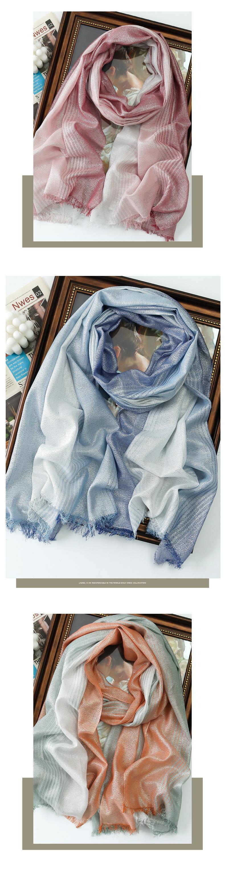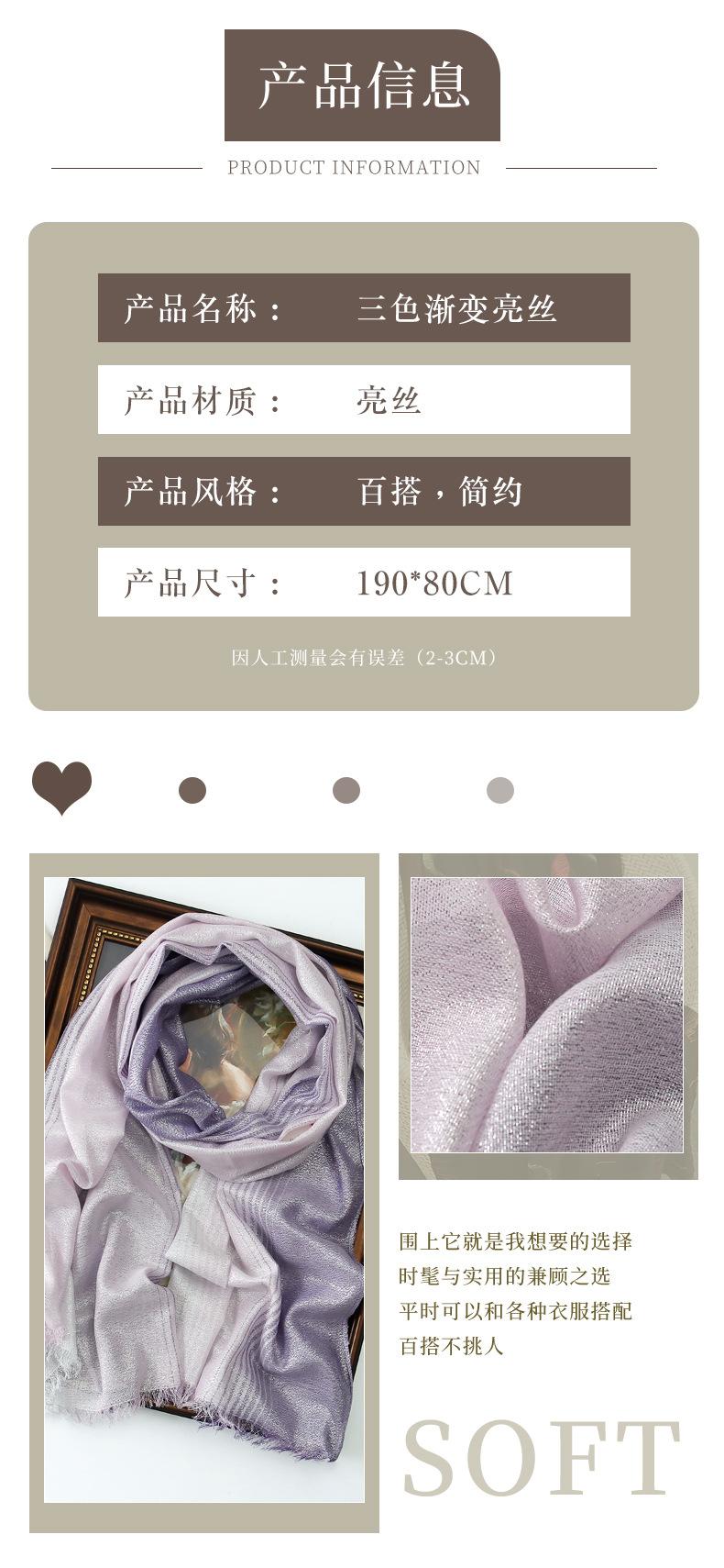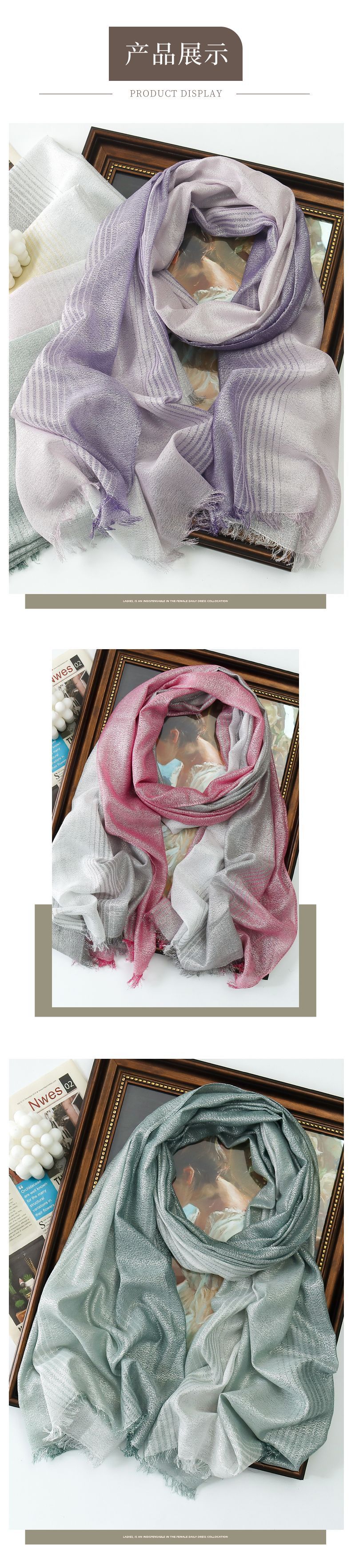 Bufanda de seda brillante degradada tricolor algodón y lino delgada color sólido liso costura sencilla borde dividido bufanda de seda suave bolsa pañuelo para la cabeza para mujer