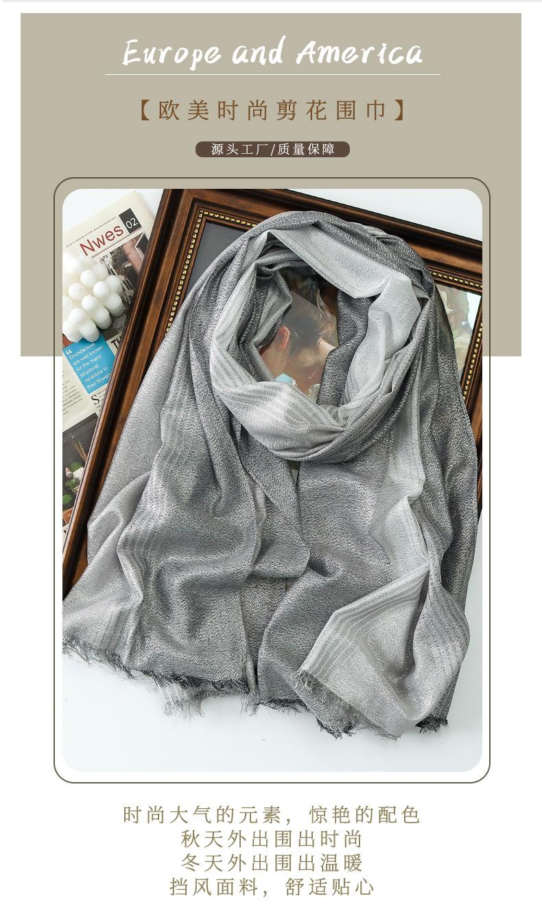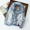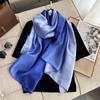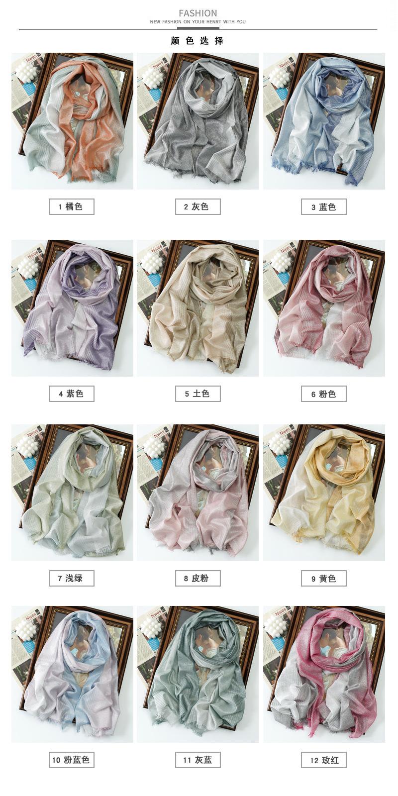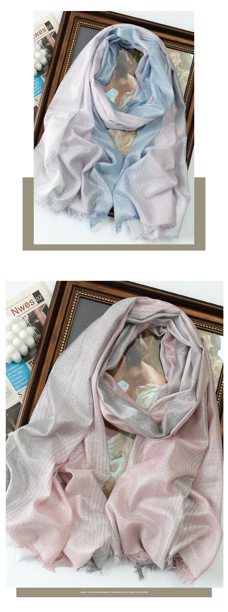 Bufanda de seda brillante degradada tricolor algodón y lino delgada color sólido liso costura sencilla borde dividido bufanda de seda suave bolsa pañuelo para la cabeza para mujer