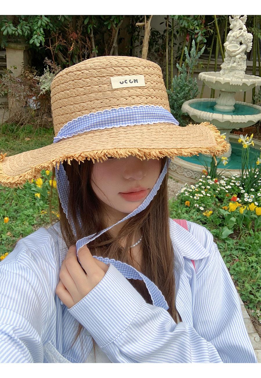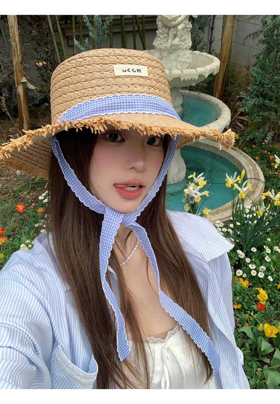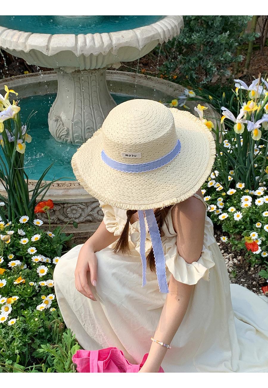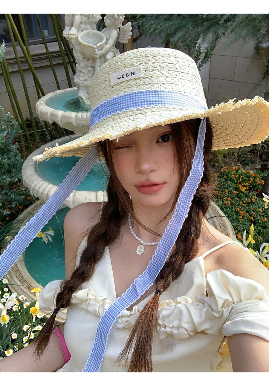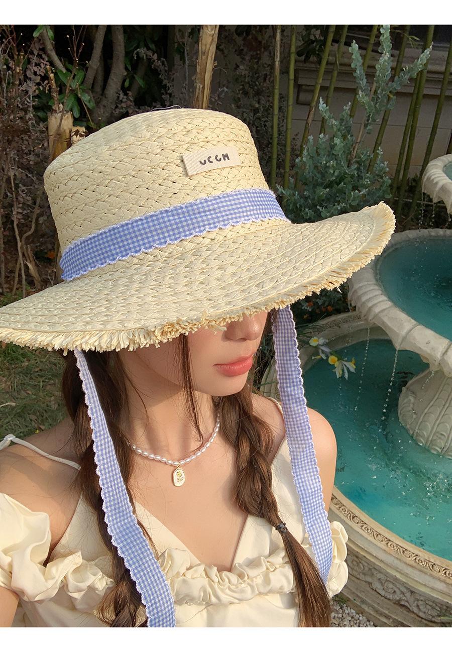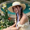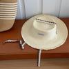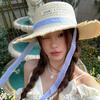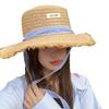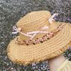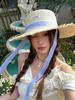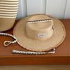 2025 Nuevo Sombrero de Paja de Ala Ancha Dulce Verano Fresco Vacaciones en la Playa para Mujer con Parasol y Cinta Tejida