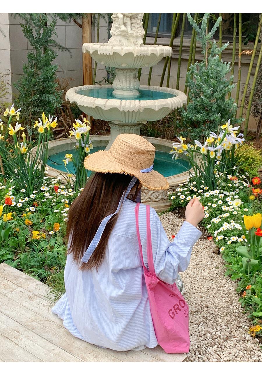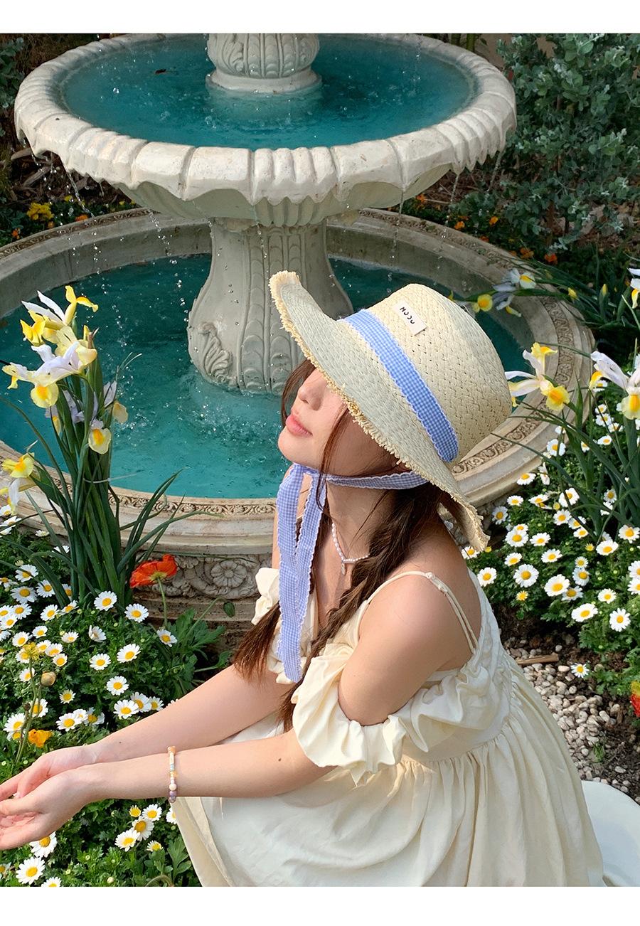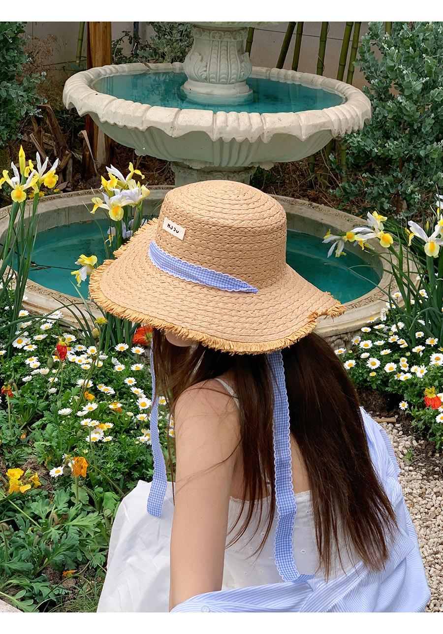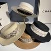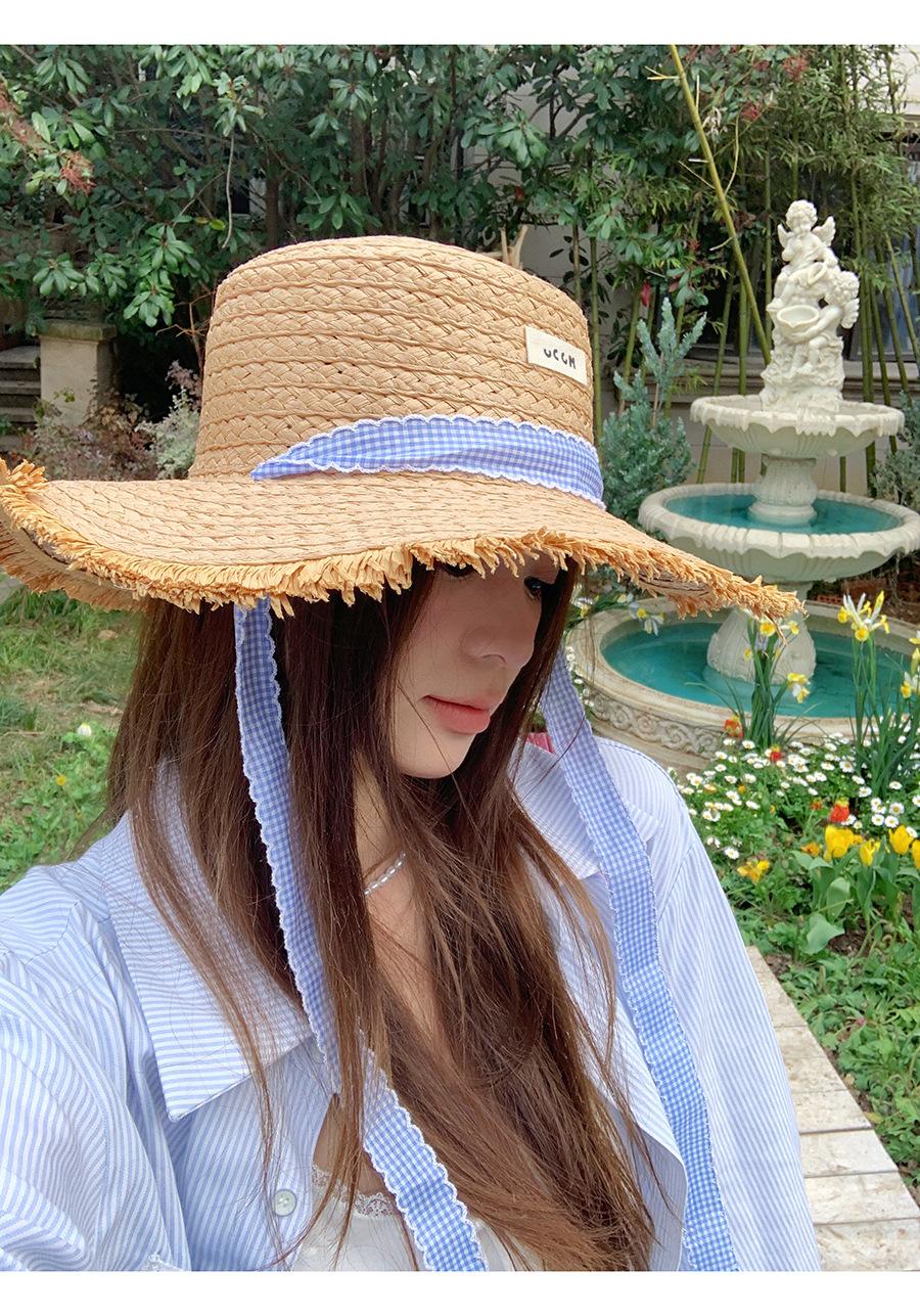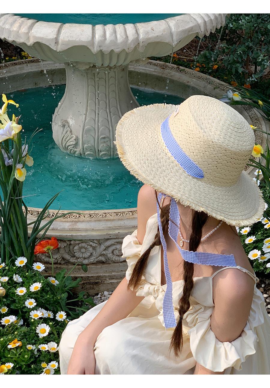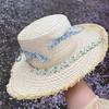 2025 Nuevo Sombrero de Paja de Ala Ancha Dulce Verano Fresco Vacaciones en la Playa para Mujer con Parasol y Cinta Tejida