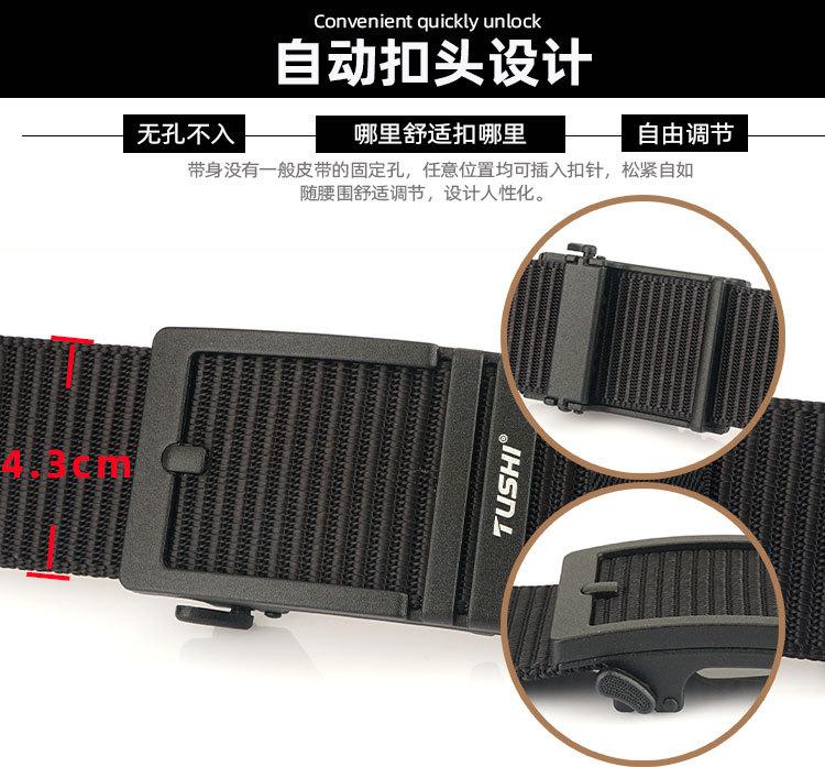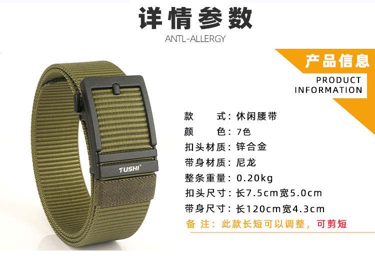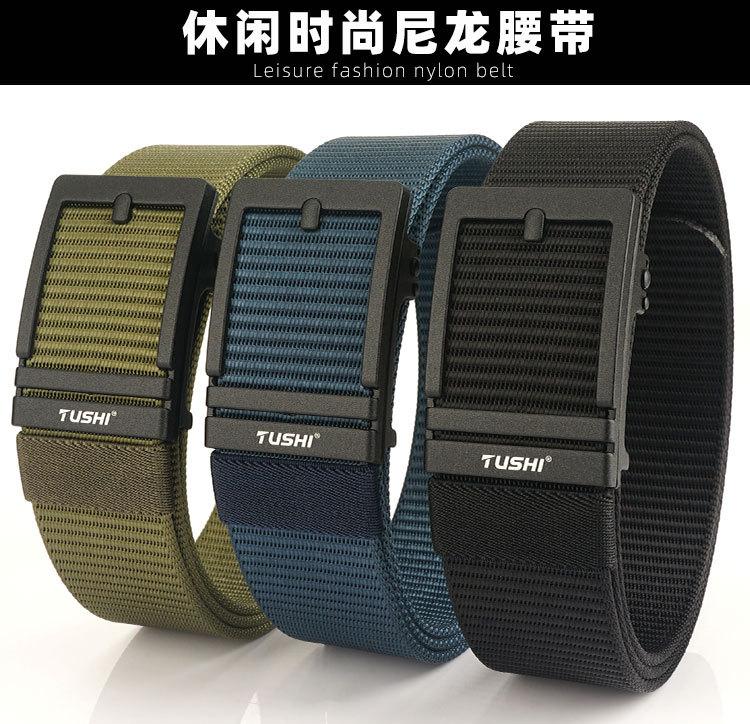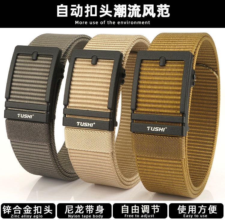 Cinturón táctico de lona de nailon con hebilla automática sin dientes de aleación para hombre, estilo informal, combina con todo.