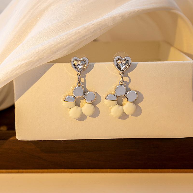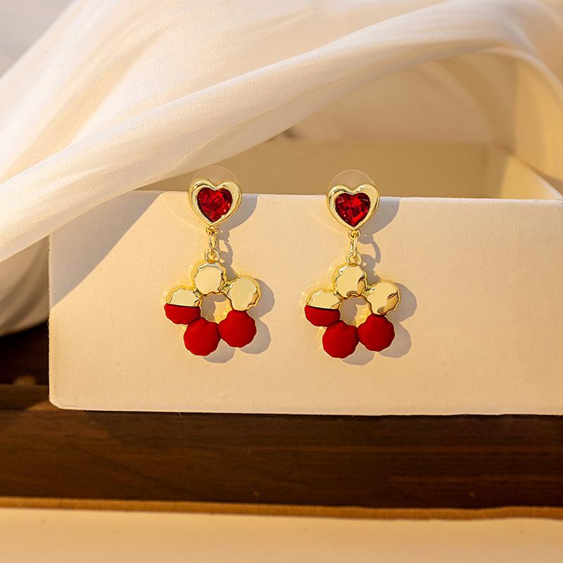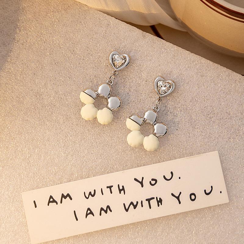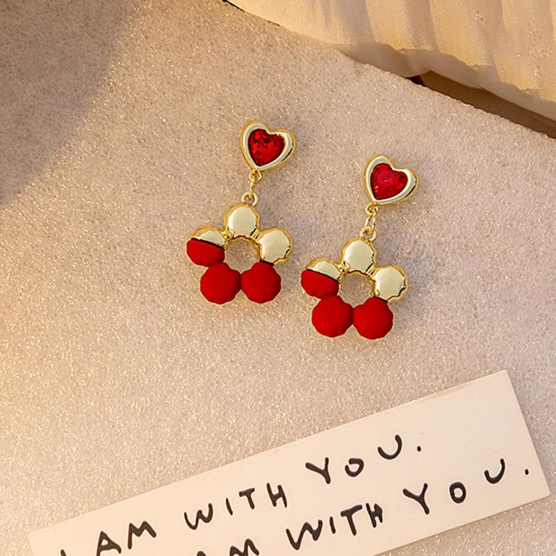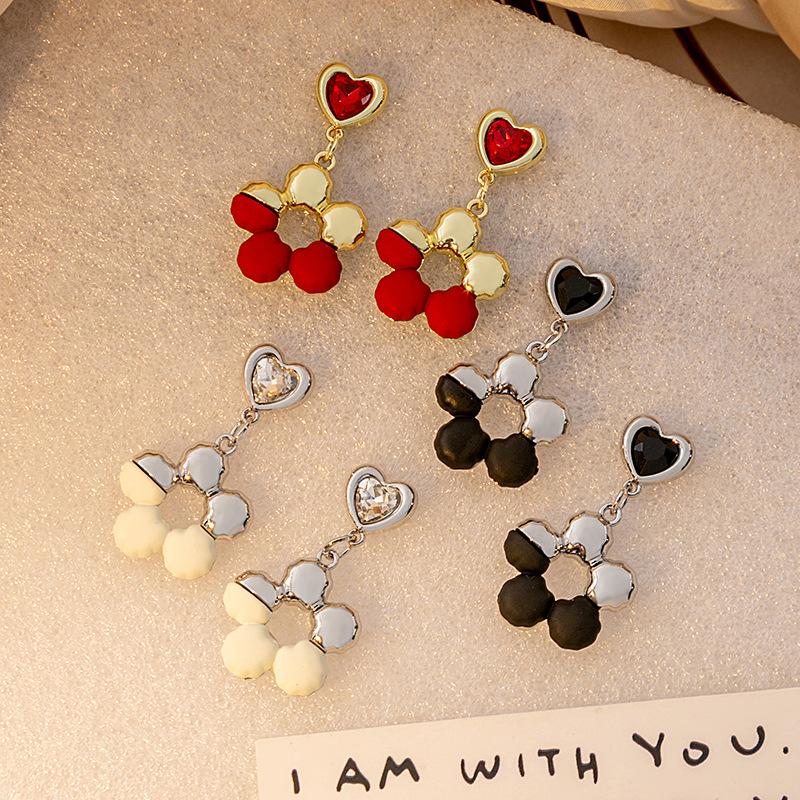 Compra Pendientes huecos con forma de flor de amor dulce con aguja de plata, estilo nicho de alta gama, pendientes de colores a juego, pendientes sencillos al por mayor al por mayor en Joom.pro