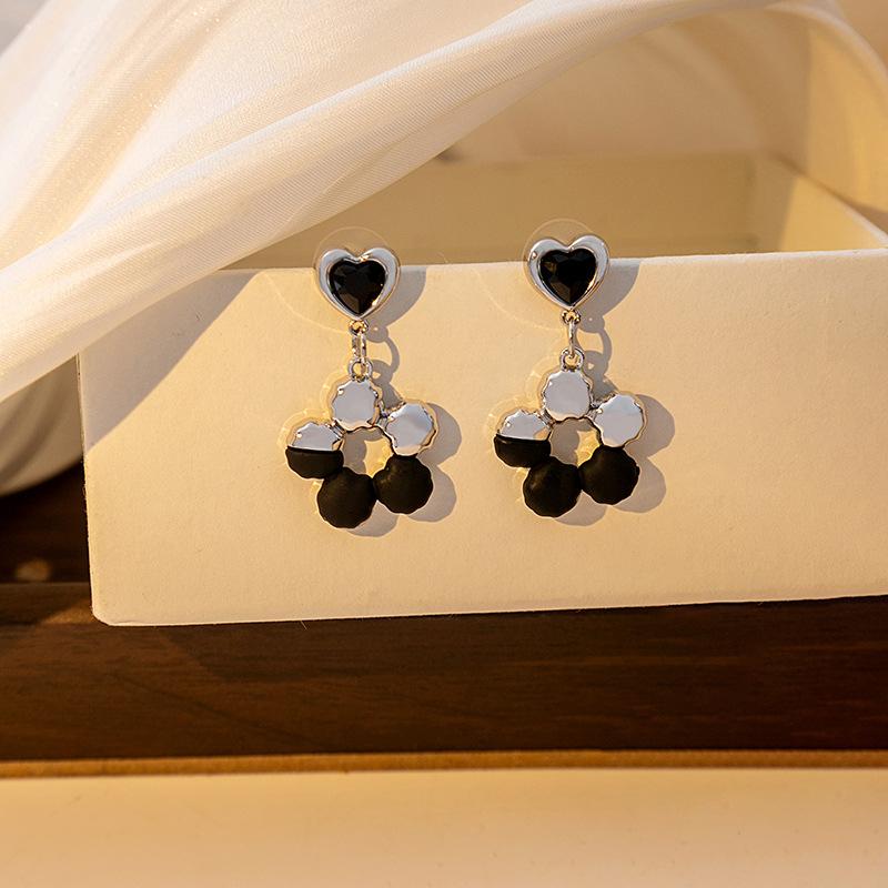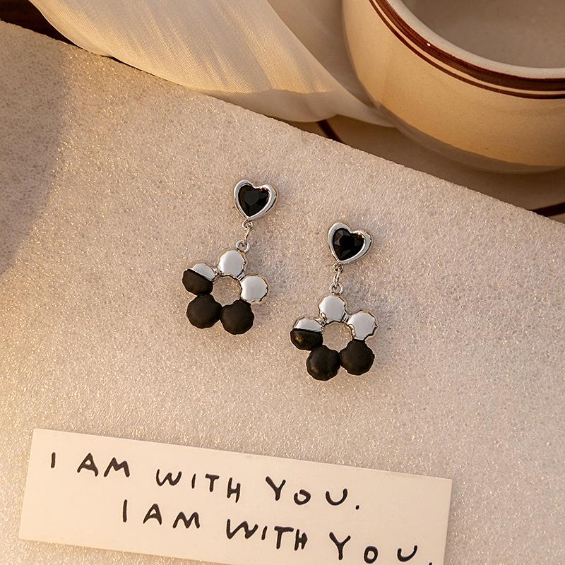 Pendientes huecos con forma de flor de amor dulce con aguja de plata, estilo nicho de alta gama, pendientes de colores a juego, pendientes sencillos al por mayor