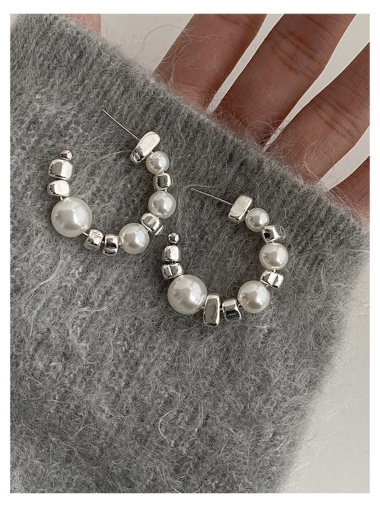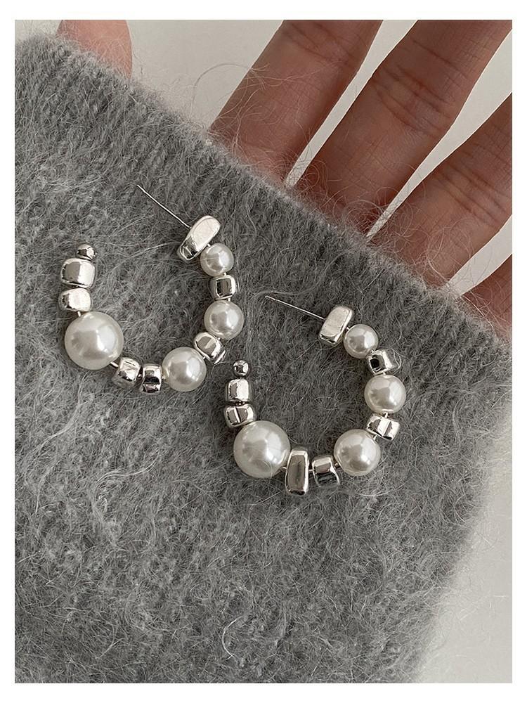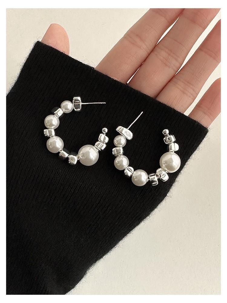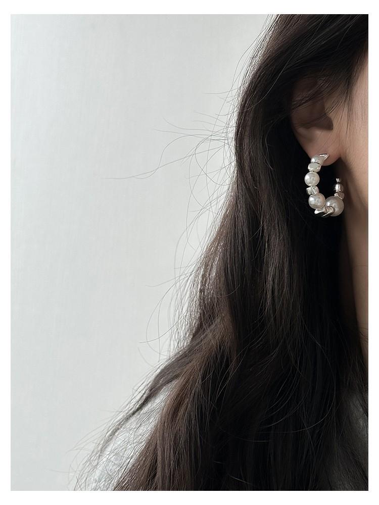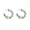 Aretes rotos de plata de alta calidad con costuras de perlas en forma de C, aretes coreanos simples