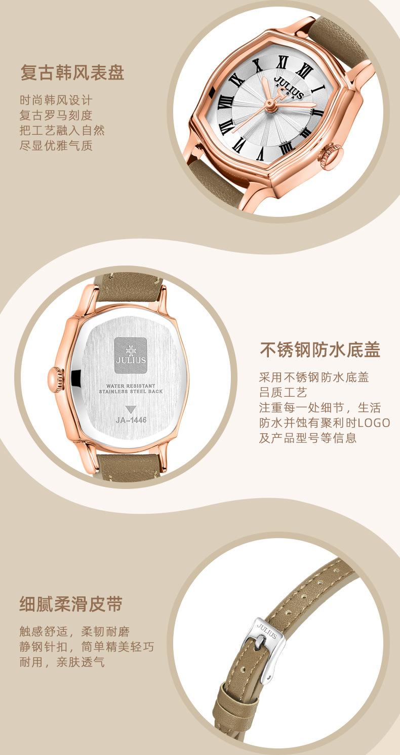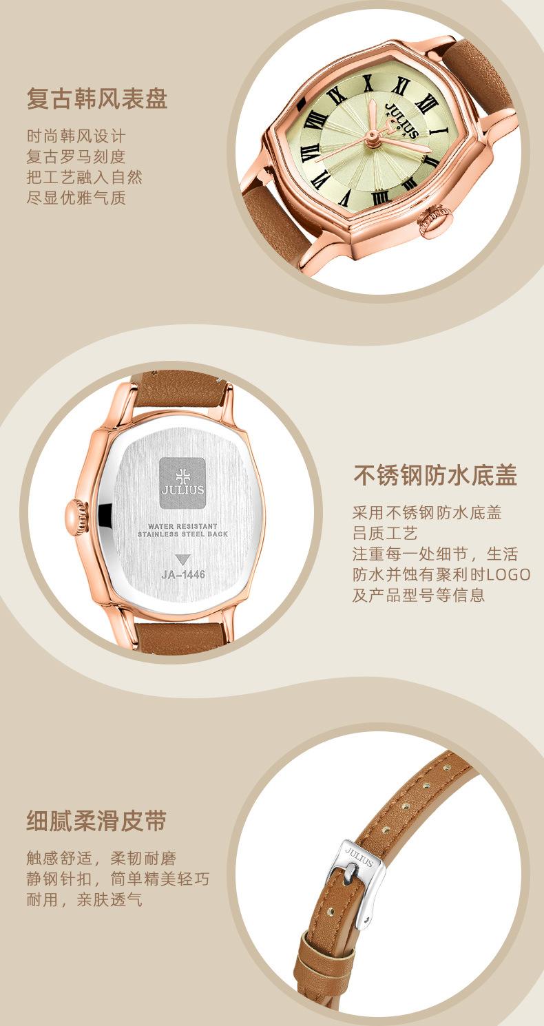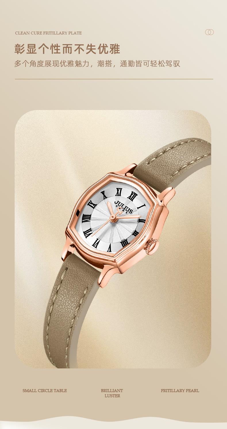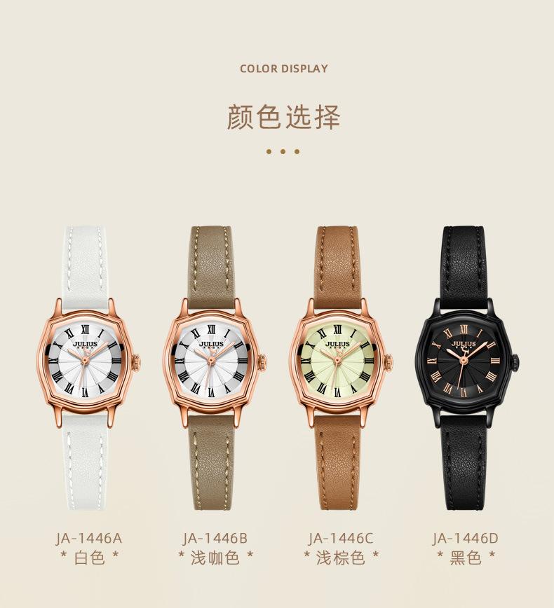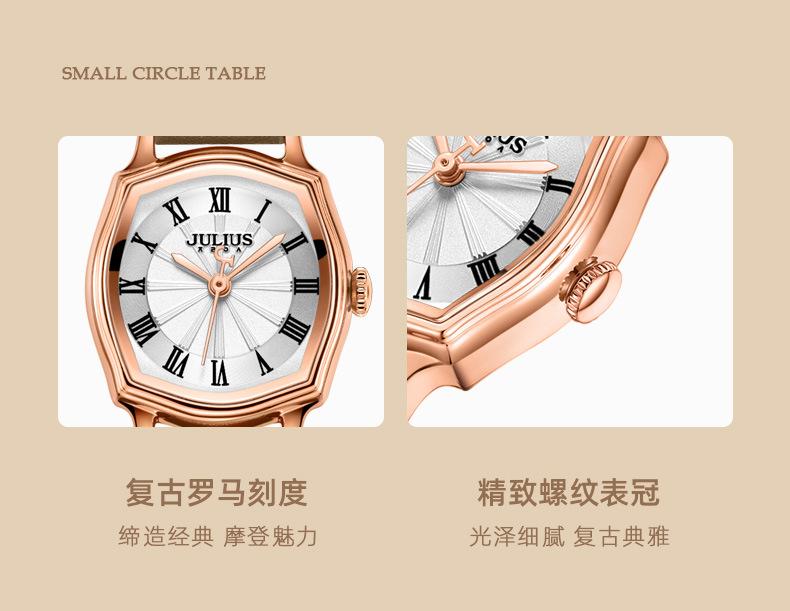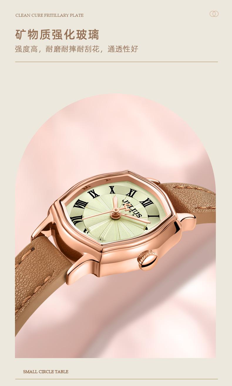 El significado de la marca JULIUS es alegre, único, amoroso, ideal, inusual y brillante. Es un reloj único que te enamorará a primera vista (Just You Will Love, un reloj único y especial). JULIUS toma este nombre y cuenta con siete series principales: Serie Clásica, Serie Emocionante, Serie Brazalete, Serie Exploración, Serie Pareja, Serie Hombre y Serie Edición Limitada.