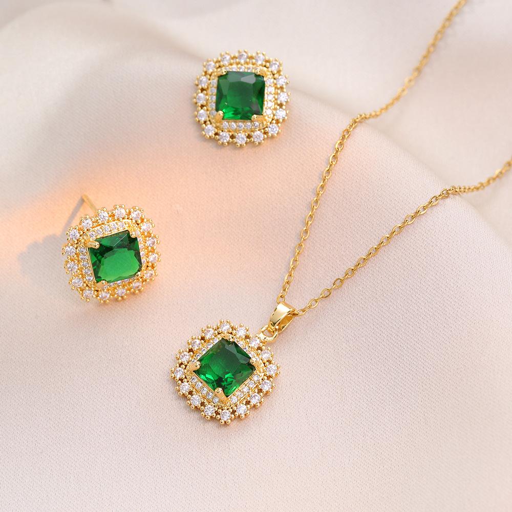 Collar para Mujer, Moda Transfronteriza Simple Elegante Juego de Esmeralda Aretes Estilo Cool Ins Collar Popular