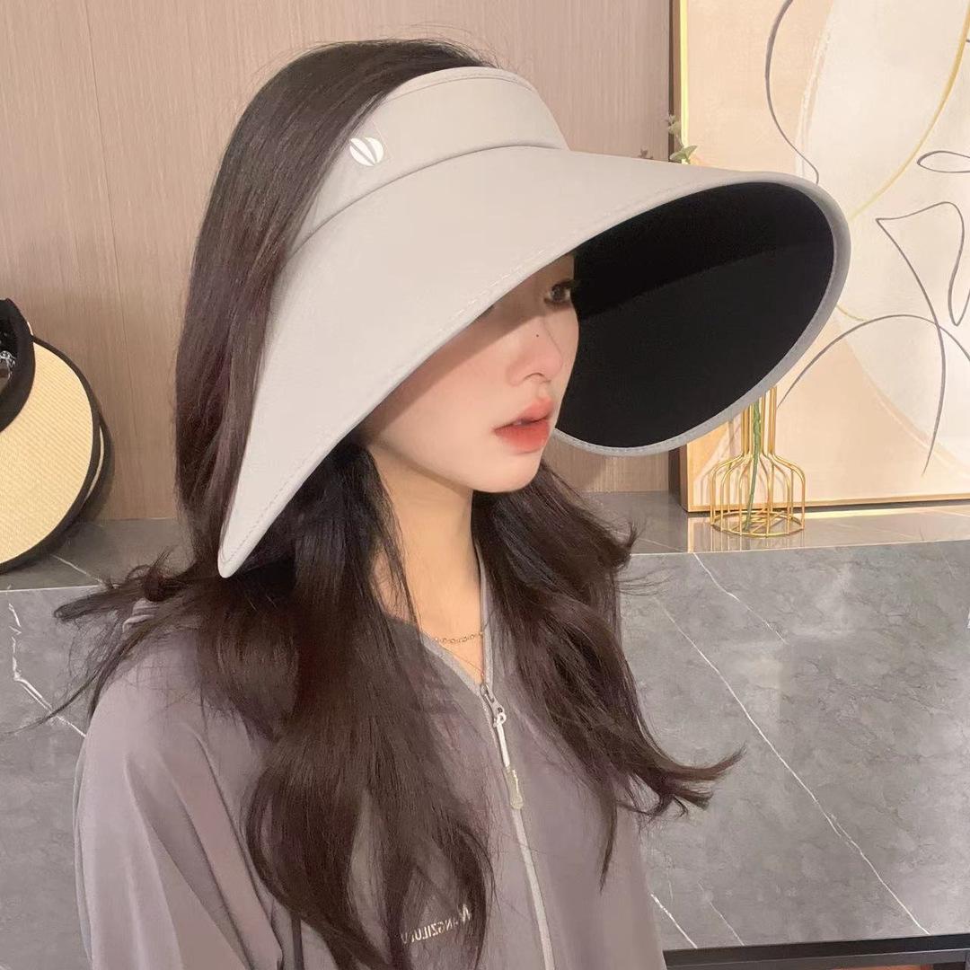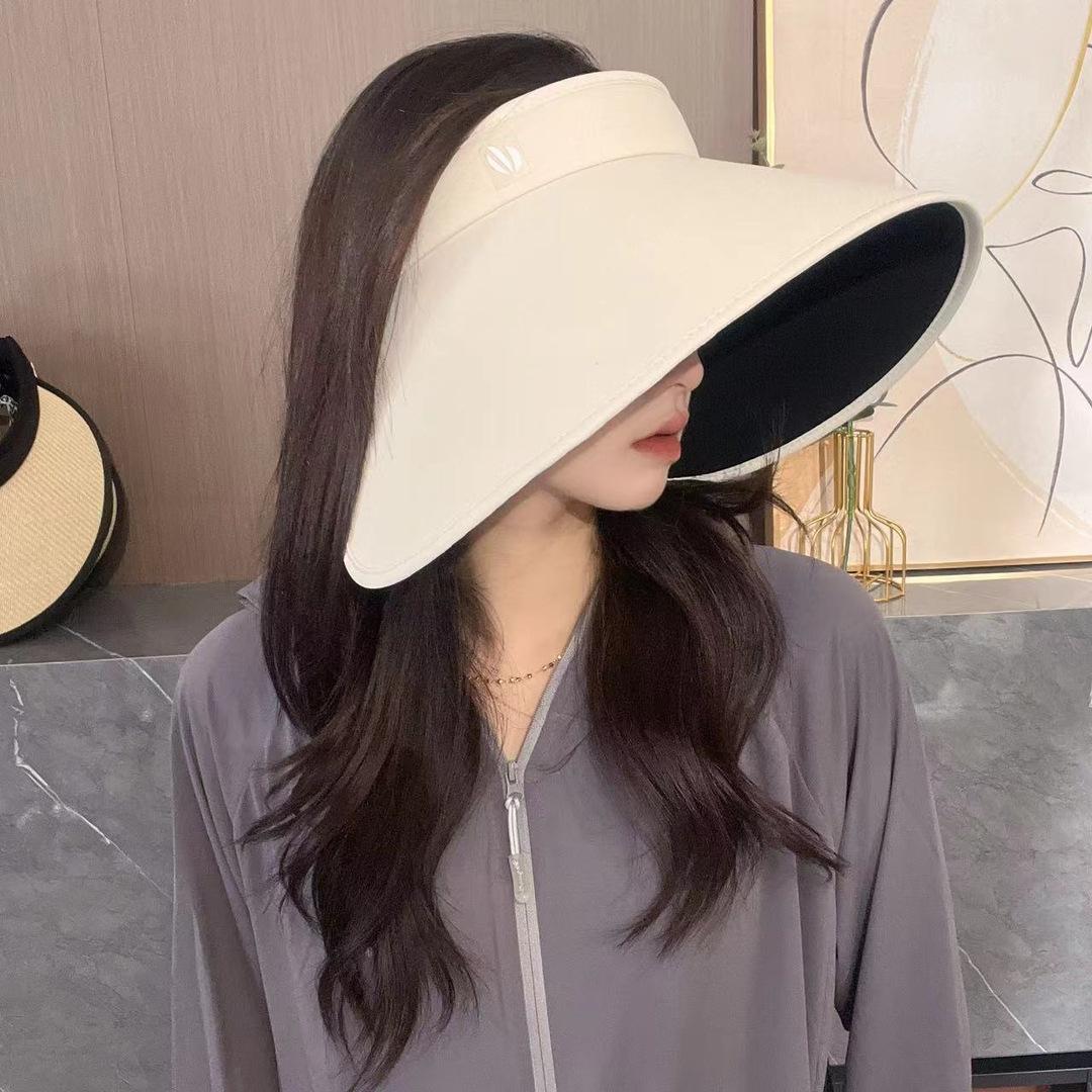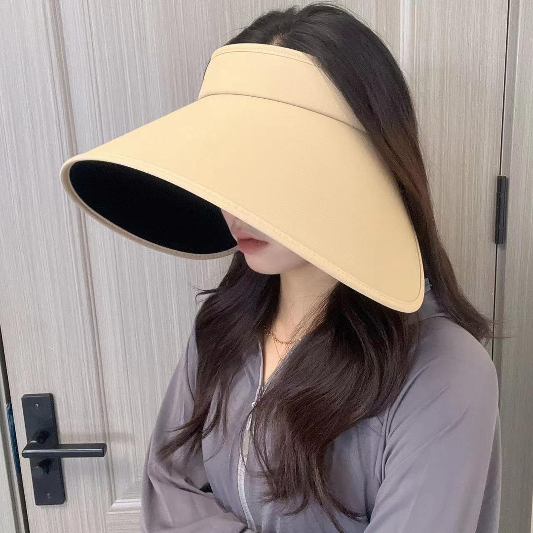 Sombrero de Sol Vacío Superior de Pegamento Negro Mejorado para Mujer Verano Exterior Ciclismo Ala Grande Envolvente Anti-UV Sombrero Vacío Superior