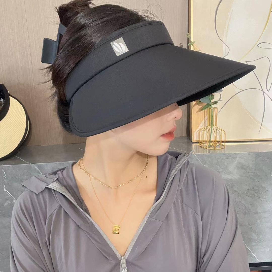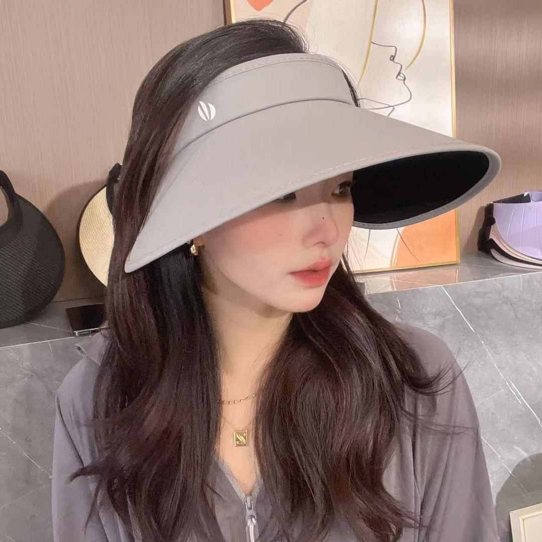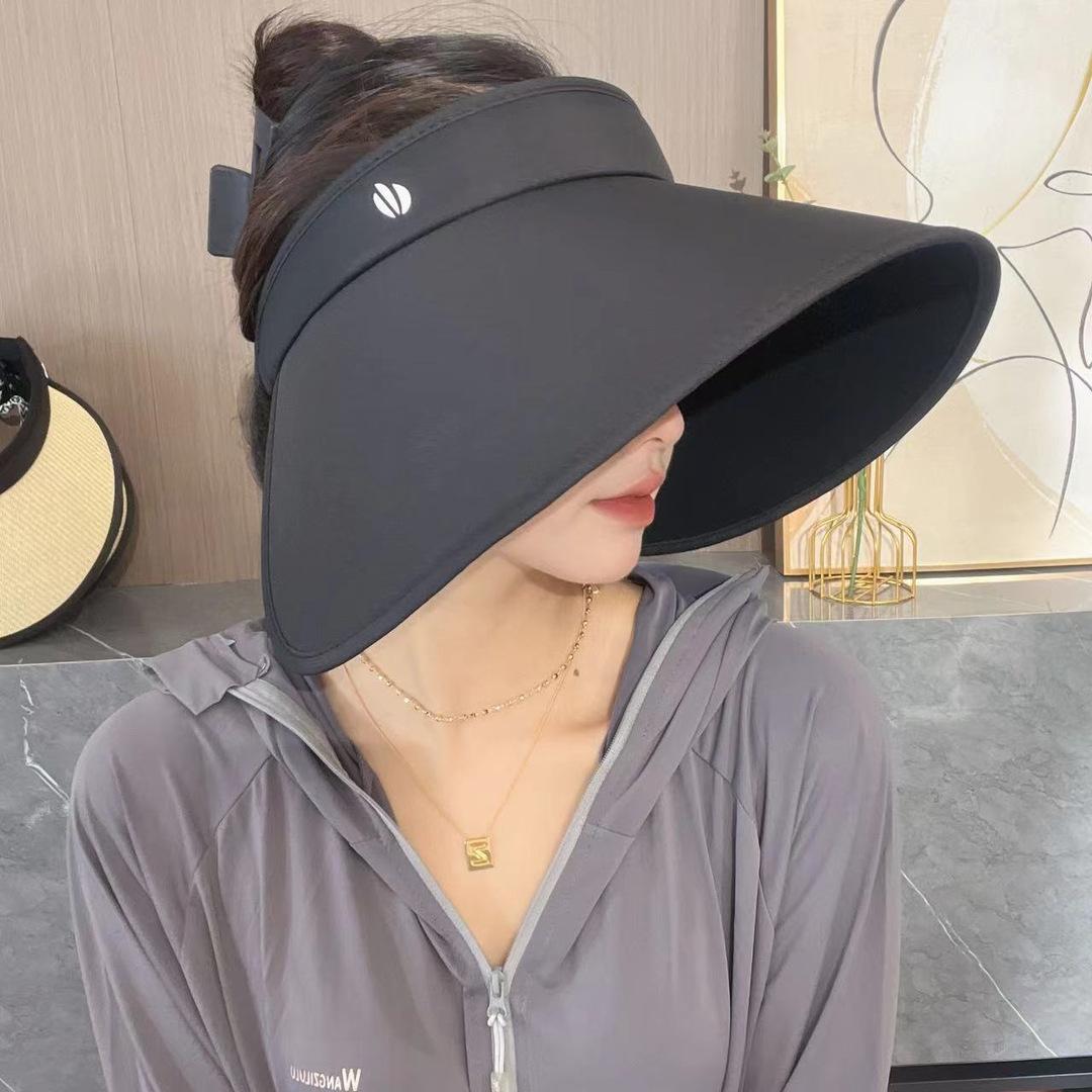 Sombrero de Sol Vacío Superior de Pegamento Negro Mejorado para Mujer Verano Exterior Ciclismo Ala Grande Envolvente Anti-UV Sombrero Vacío Superior