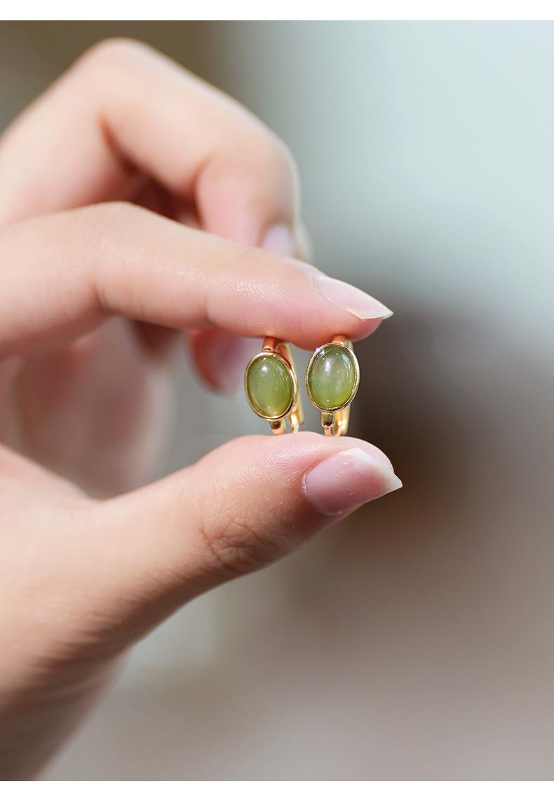 Hetian Jasper Oval stone ear buckle [about 2.42g]]