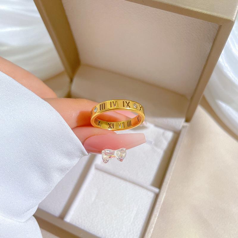 Compra [No se desvanece] texto minimalista acero de titanio viento frío anillo disco hombres y mujeres moda ins personalidad simple anillo de comida al por mayor en Joom.pro