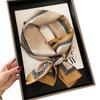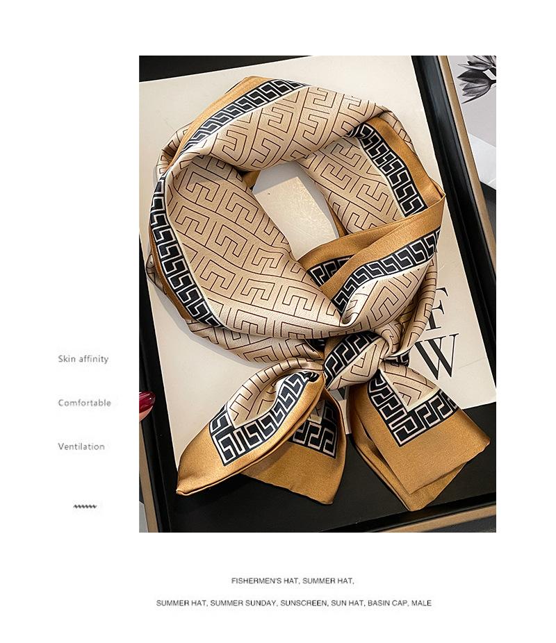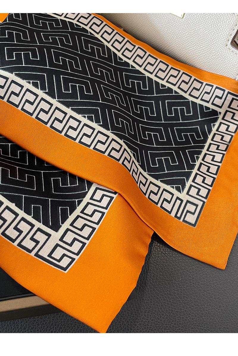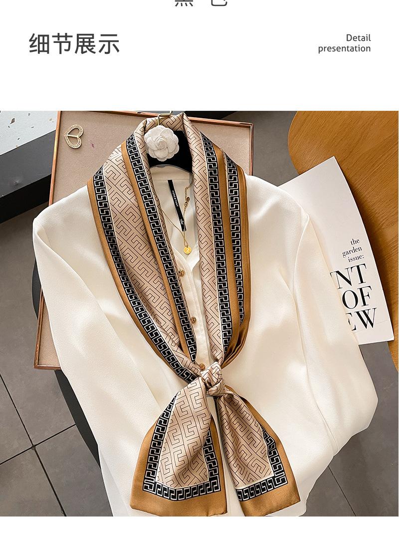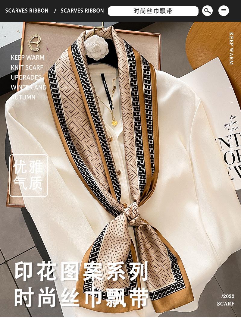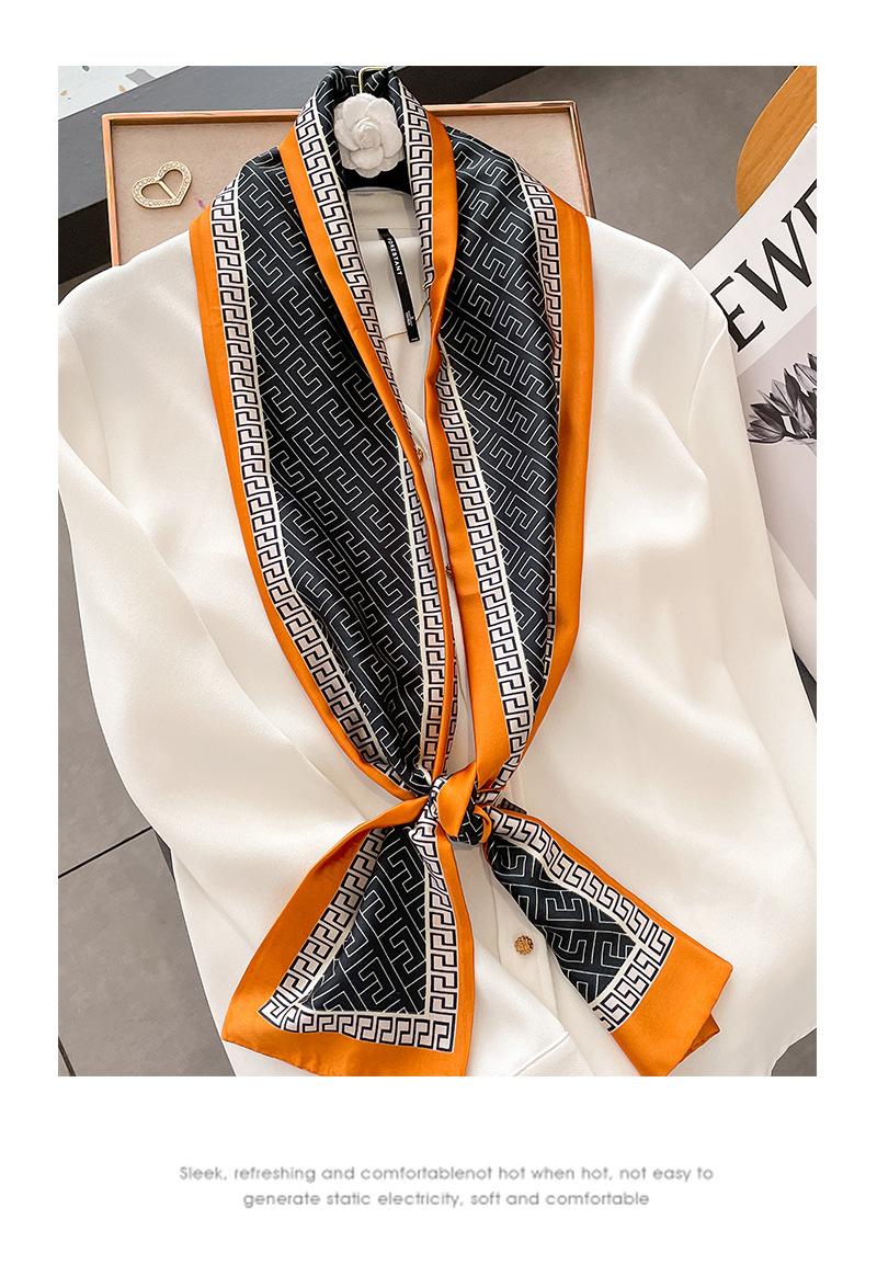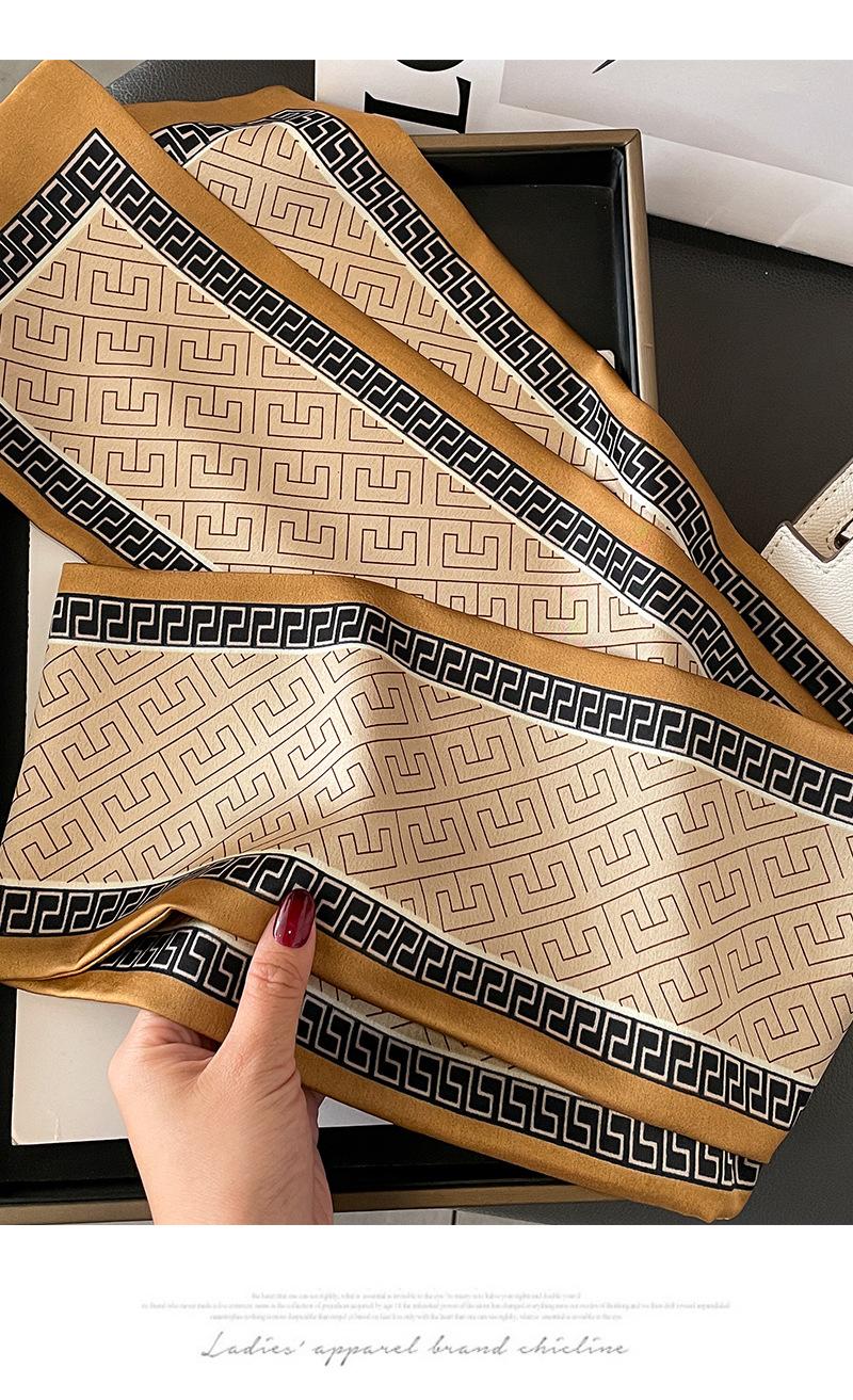 Primavera y Verano Geometría Coreana Retro Estilo Pequeño Fragante Bufanda Pequeña Bufanda de Seda para Mujer Protección para el Cuello Cinta Larga