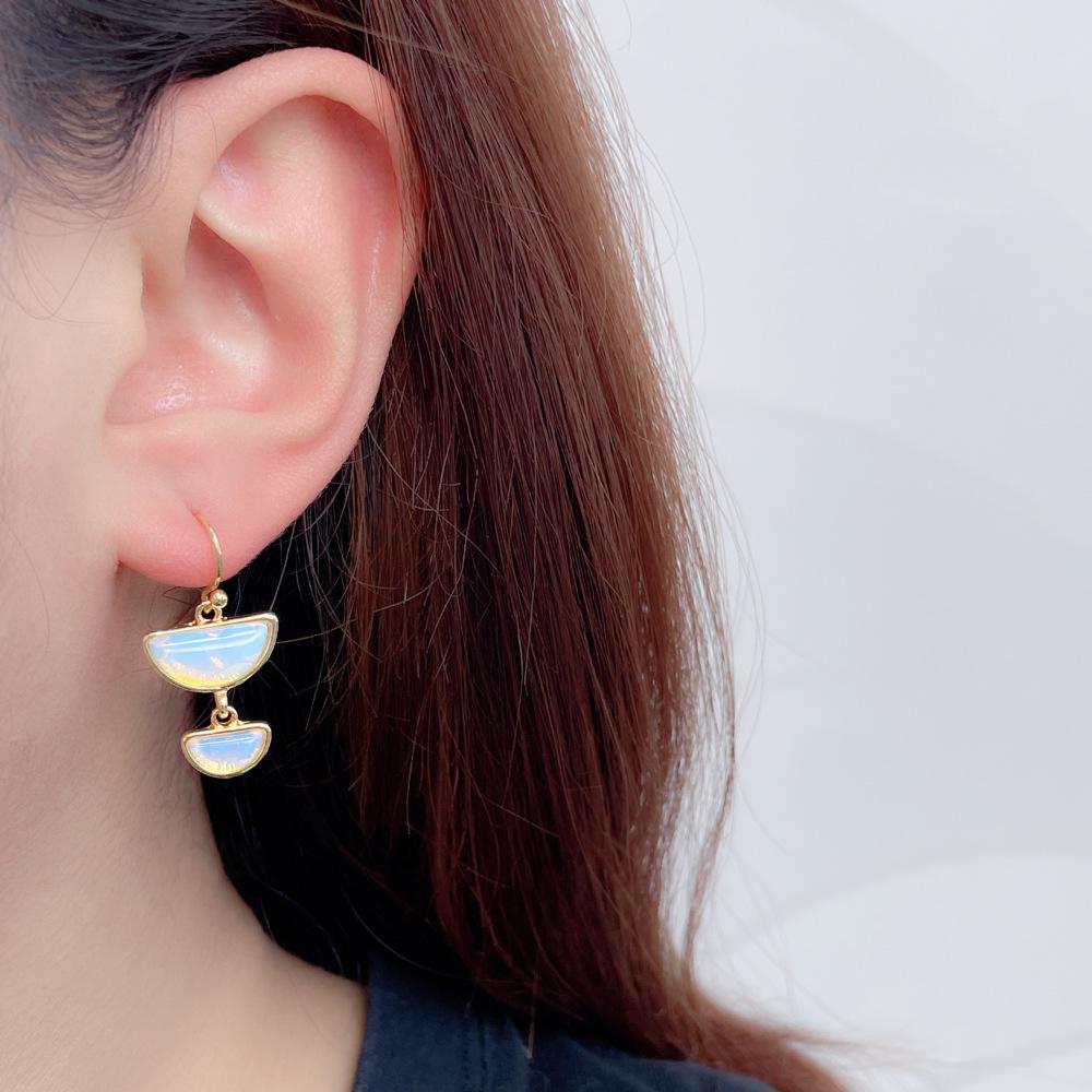 Pendientes semicirculares de piedra natural, ligeros, de lujo y a la moda, sencillos, personalizados y a la moda, con un toque atmosférico que combina con todo.