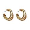 Pendientes de plata 925 con forma de aguja, de estilo europeo y americano, con tres anillos de metal, elegantes, retro, modernos, al por mayor, joyería de nicho para las orejas.