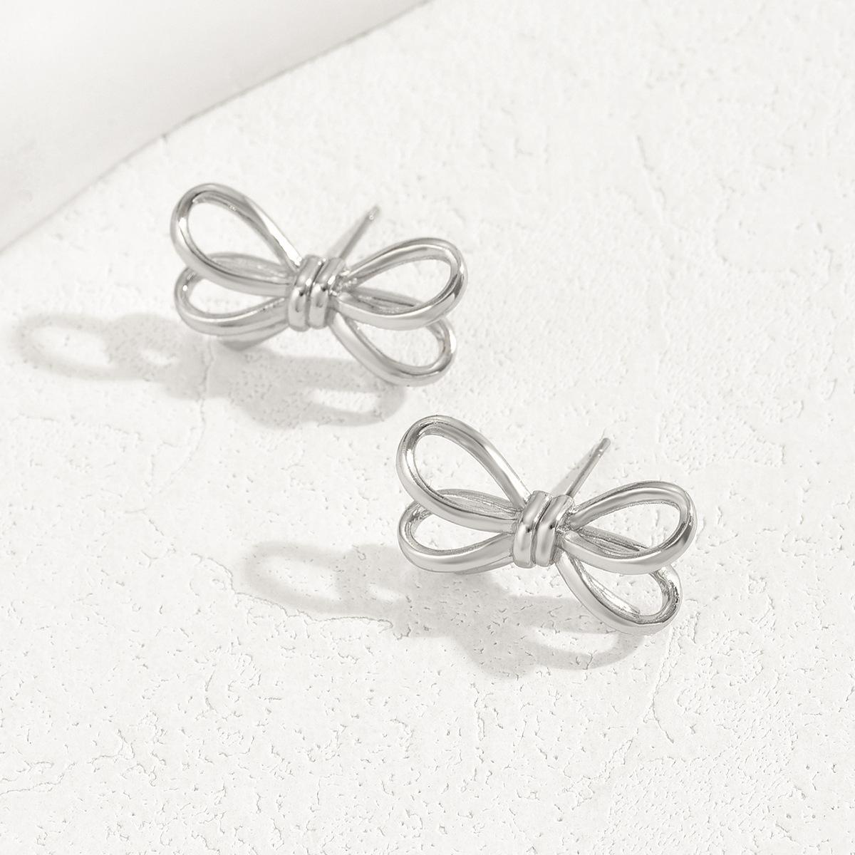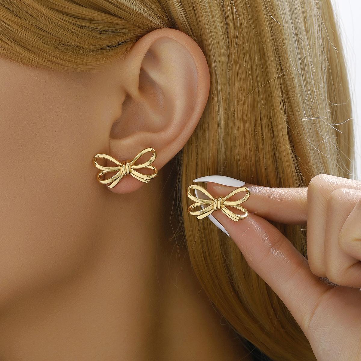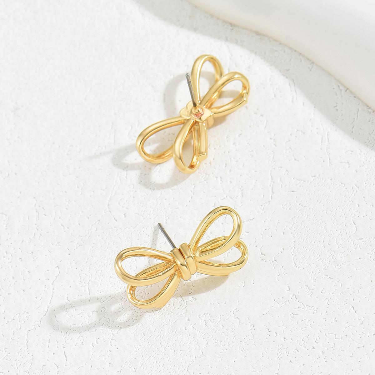 Pendientes de lazo de estilo coreano dulces, pendientes de oro de 18 quilates multicapa huecos personalizados, pendientes versátiles estilo celebridad de Internet