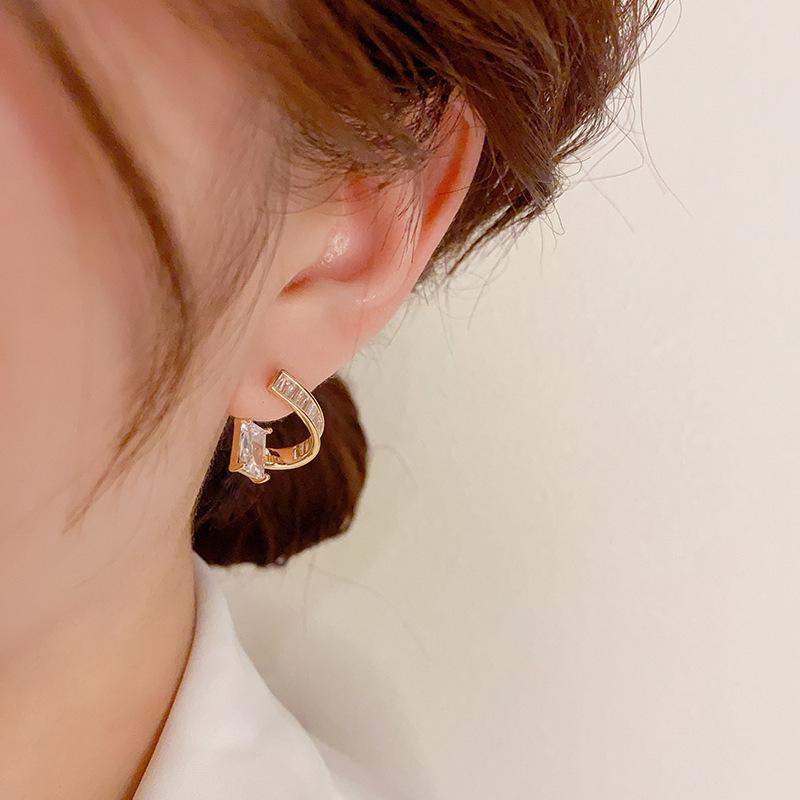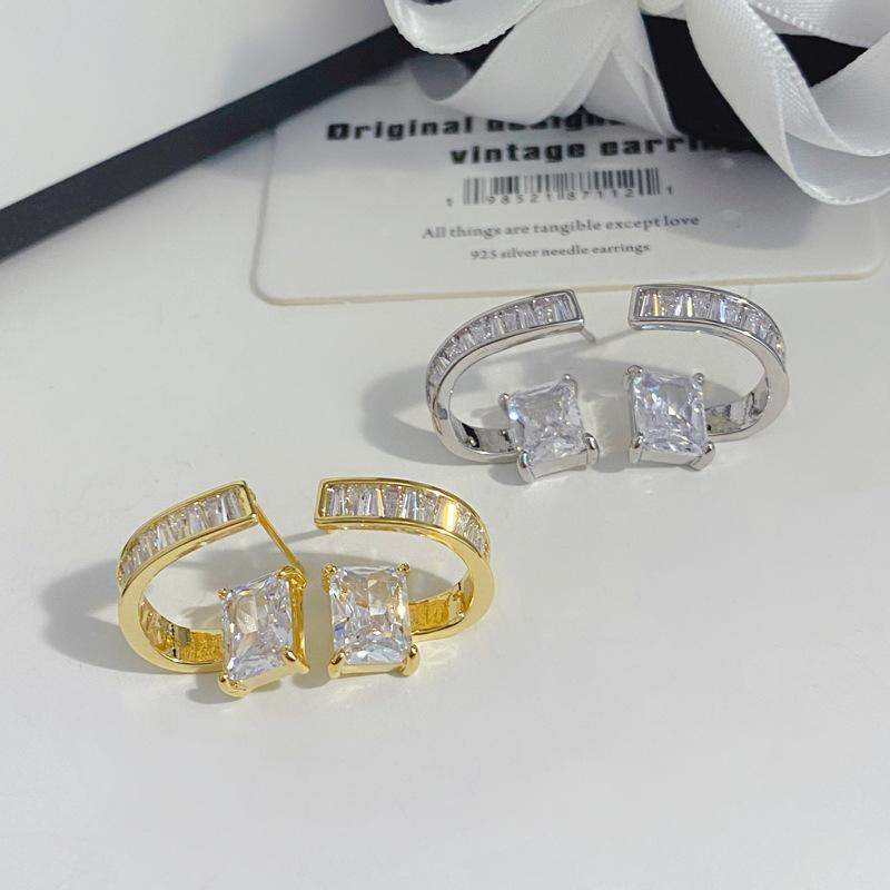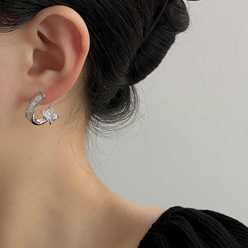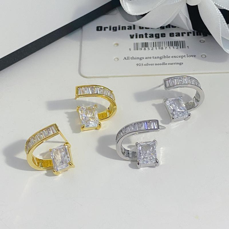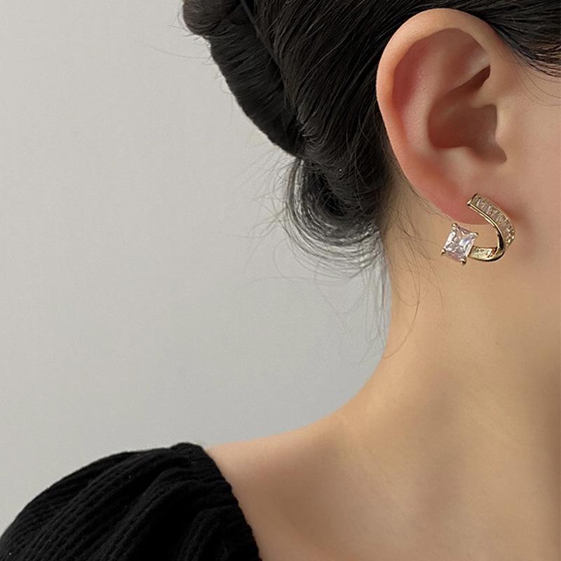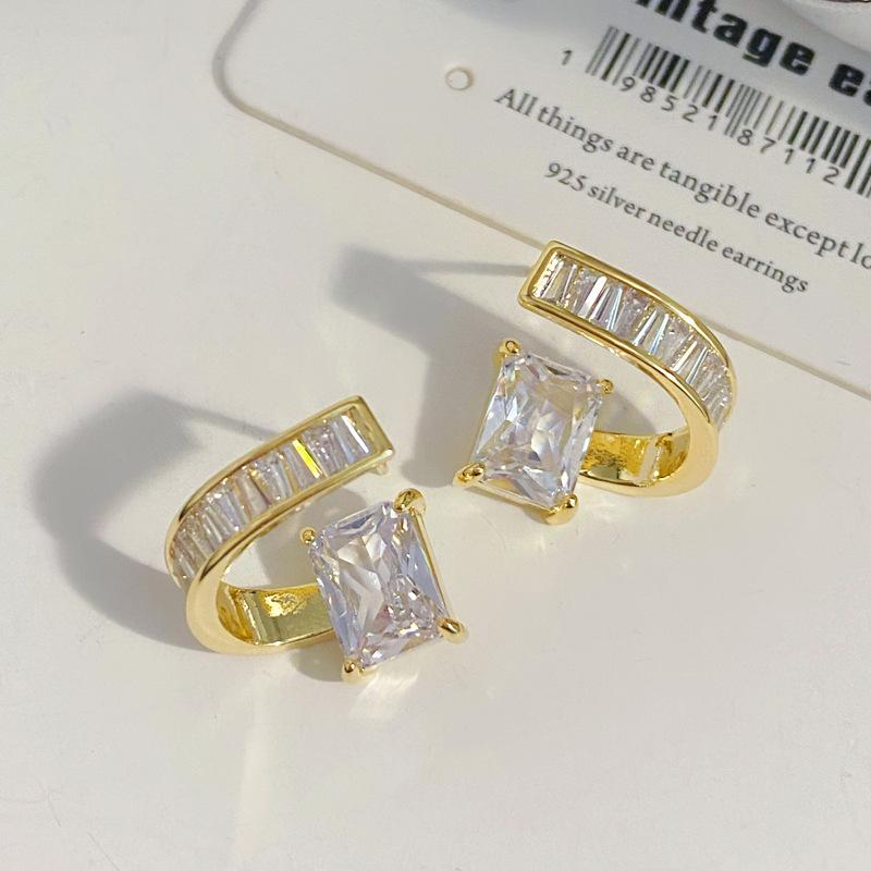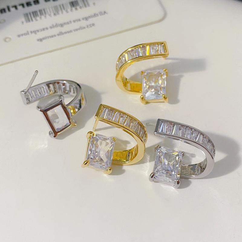 Compra Nuevos pendientes de moda con diseño único de circonitas cuadradas geométricas, elegantes y avanzados, pendientes de lujo ligeros y sencillos. al por mayor en Joom.pro