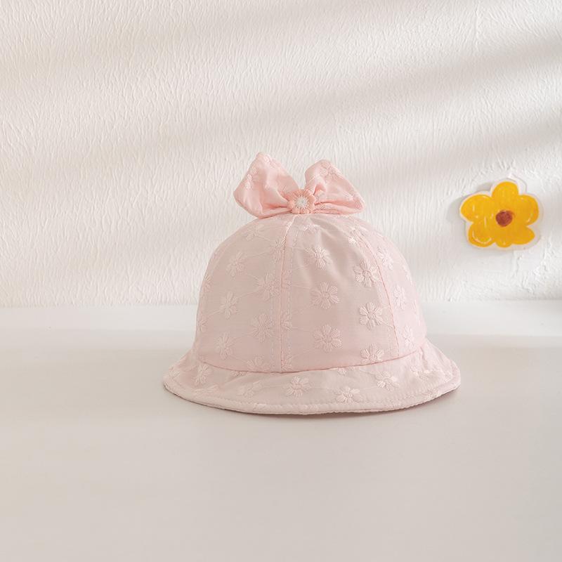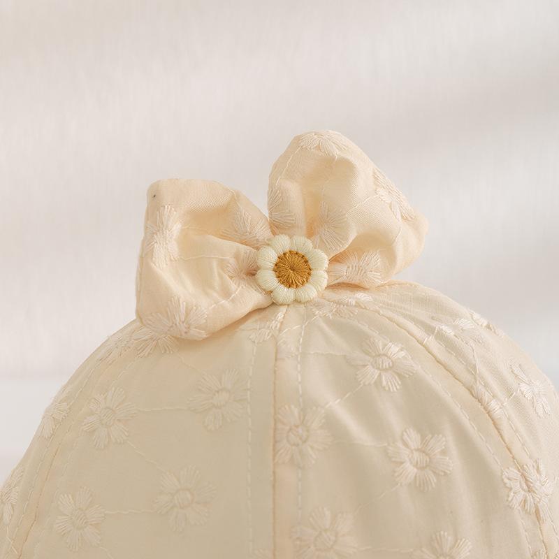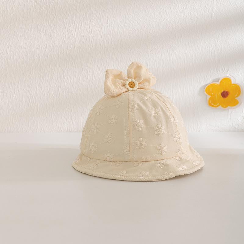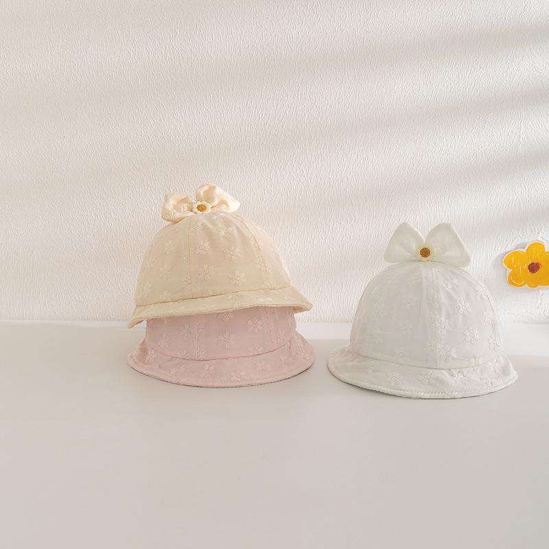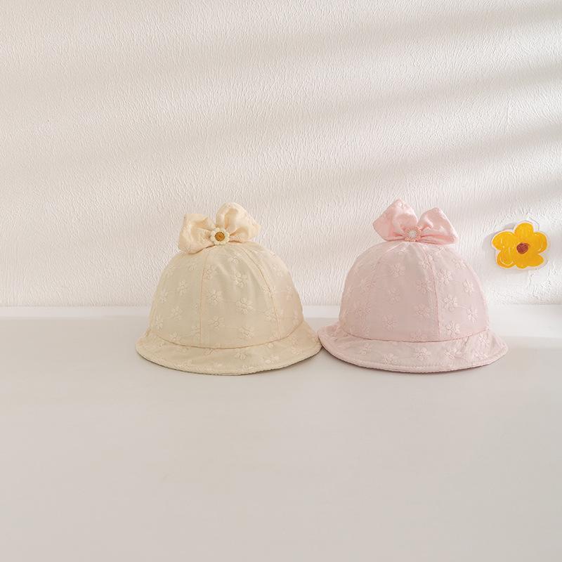 Gorro de bebé primavera 2024, nuevo, pequeño y fresco, con lazo de princesa, para viaje, resistente al sol, combinable, con ala grande para bebé.