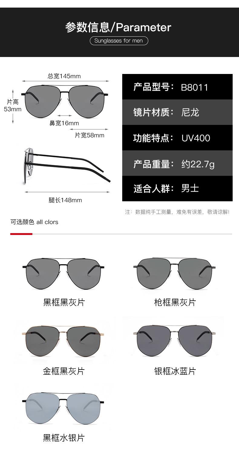 B8011 Gafas de Sol Polarizadas de Nailon TikTok Live Moda Doble Puente Espejo Ojo de Rana para Hombre Edición de Calidad Ligera