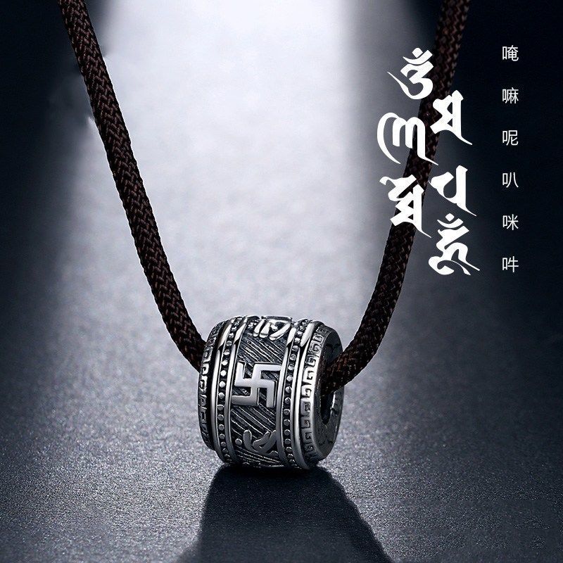 Colgante de cuentas de transferencia, collar de mantra de seis caracteres de plata S925, joyería de personalidad retro para amantes de las chicas, regalo para hombres japoneses